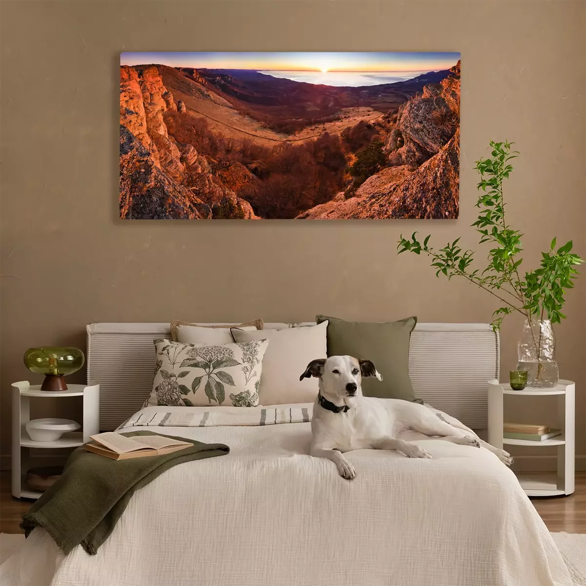 Das Motiv wird auf eine qualitativ hochwertige Leinwand gedruckt, die auf einen Blendrahmen gezogen wird. Da der Aufdruck die Seitenkanten bedeckt, muss das Bild nicht zusätzlich eingerahmt werden. Wir empfehlen außerdem Kompositionen aus mehreren Bildern, die ein harmonisches Ganzes bilden.