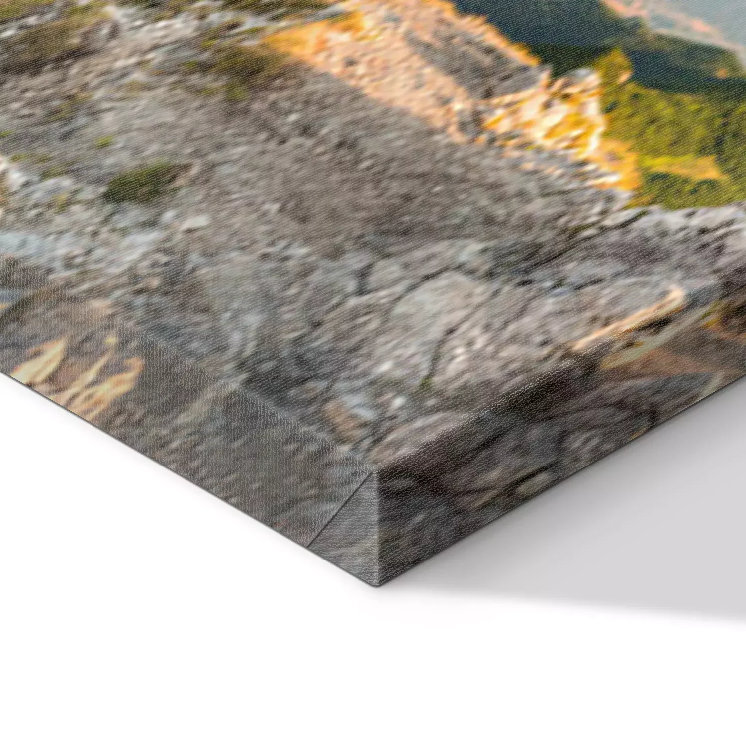 Das Motiv wird auf eine qualitativ hochwertige Leinwand gedruckt, die auf einen Blendrahmen gezogen wird. Da der Aufdruck die Seitenkanten bedeckt, muss das Bild nicht zusätzlich eingerahmt werden. Wir empfehlen außerdem Kompositionen aus mehreren Bildern, die ein harmonisches Ganzes bilden.
