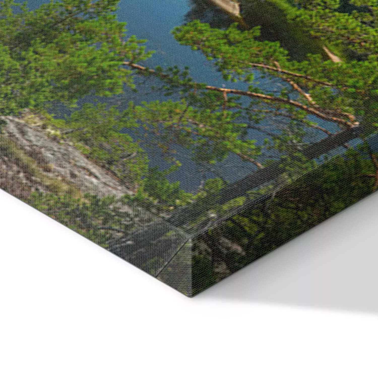 Das Motiv wird auf eine qualitativ hochwertige Leinwand gedruckt, die auf einen Blendrahmen gezogen wird. Da der Aufdruck die Seitenkanten bedeckt, muss das Bild nicht zusätzlich eingerahmt werden. Wir empfehlen außerdem Kompositionen aus mehreren Bildern, die ein harmonisches Ganzes bilden.