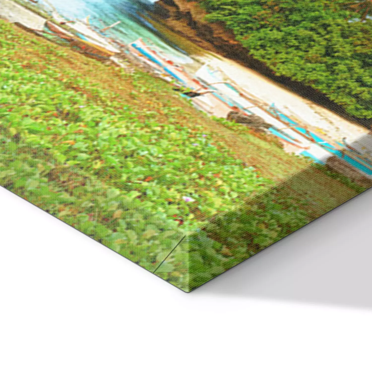 Das Motiv wird auf eine qualitativ hochwertige Leinwand gedruckt, die auf einen Blendrahmen gezogen wird. Da der Aufdruck die Seitenkanten bedeckt, muss das Bild nicht zusätzlich eingerahmt werden. Wir empfehlen außerdem Kompositionen aus mehreren Bildern, die ein harmonisches Ganzes bilden.
