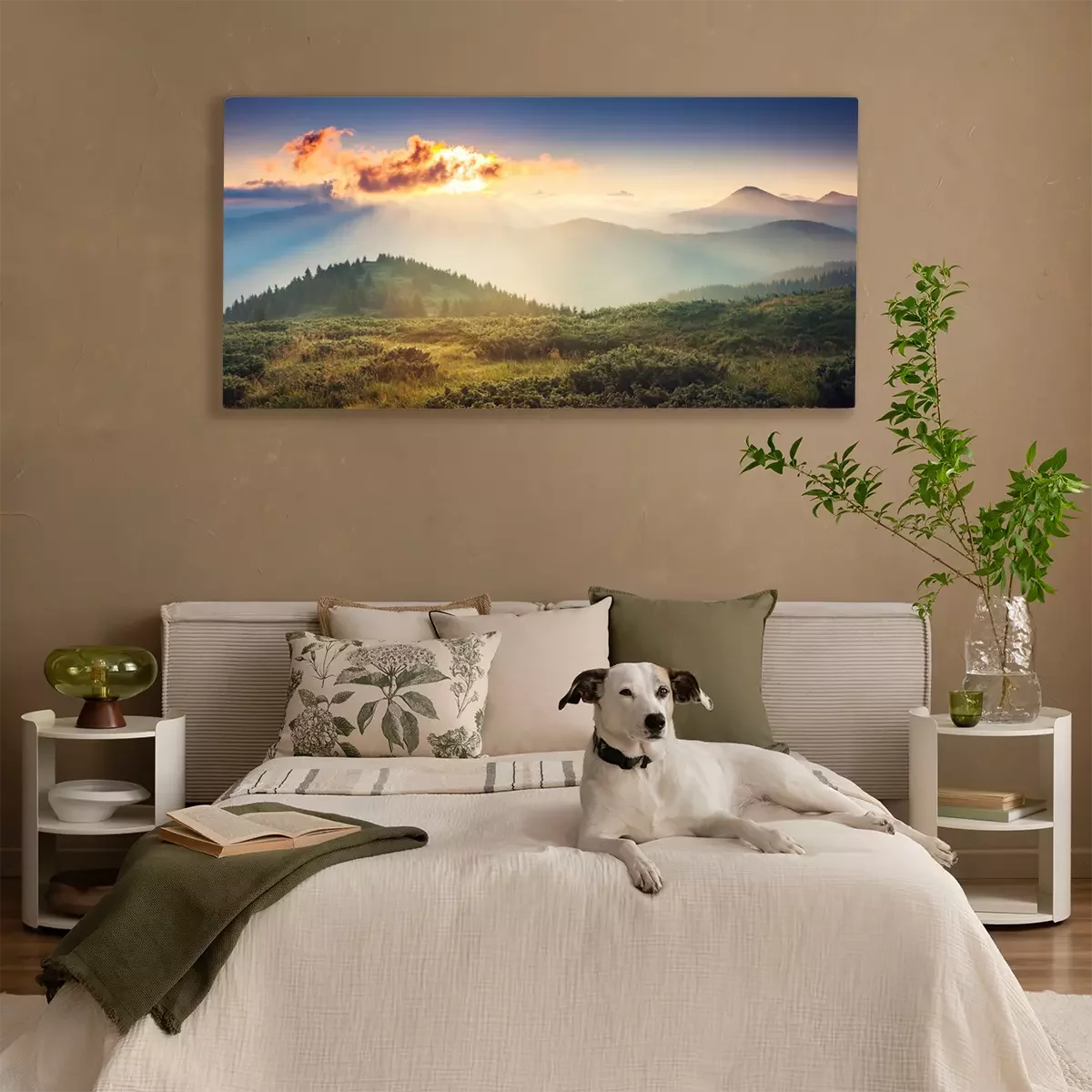 Das Motiv wird auf eine qualitativ hochwertige Leinwand gedruckt, die auf einen Blendrahmen gezogen wird. Da der Aufdruck die Seitenkanten bedeckt, muss das Bild nicht zusätzlich eingerahmt werden. Wir empfehlen außerdem Kompositionen aus mehreren Bildern, die ein harmonisches Ganzes bilden.