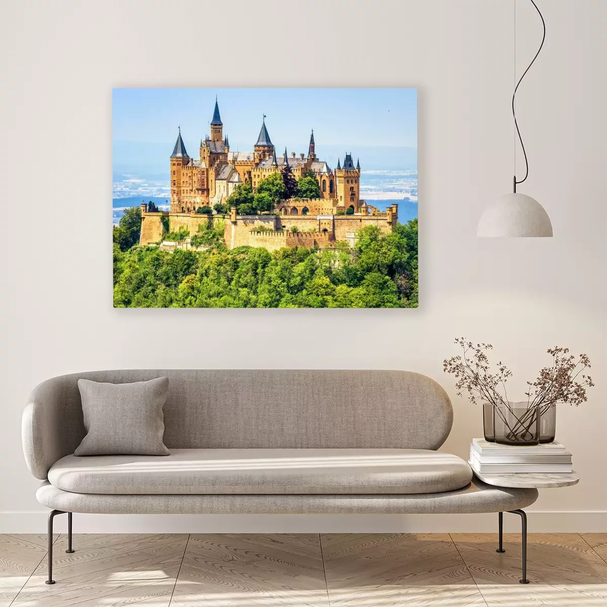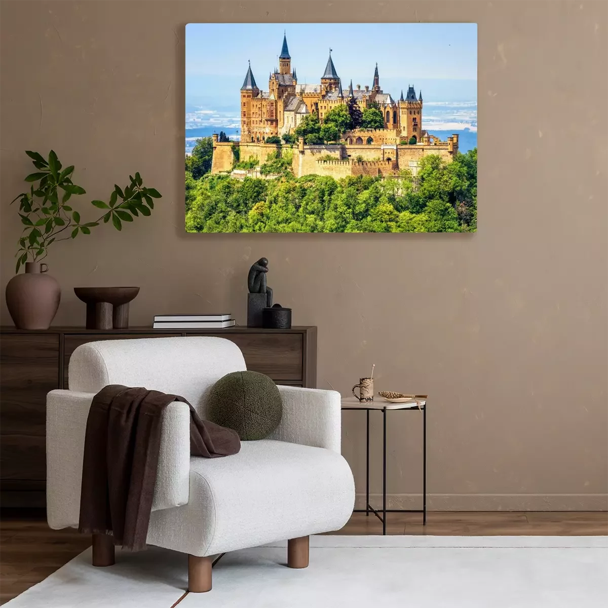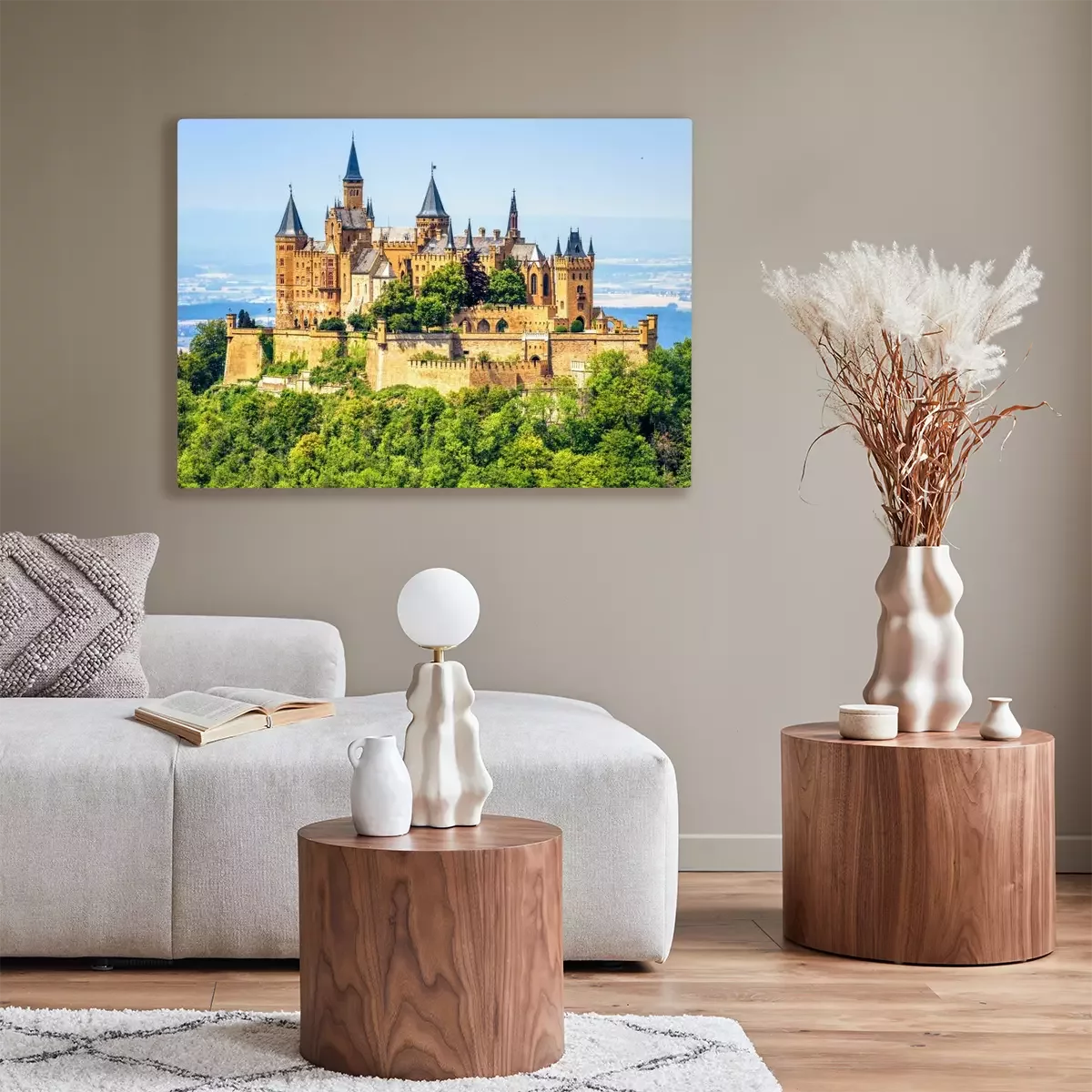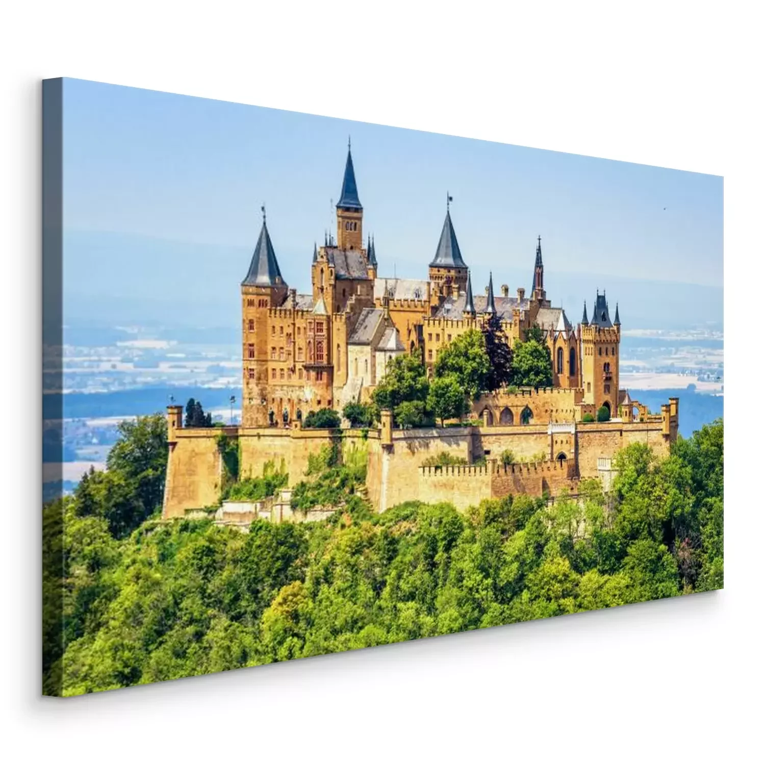 Bild: Landschaft mit Blick auf eine gotische Burg