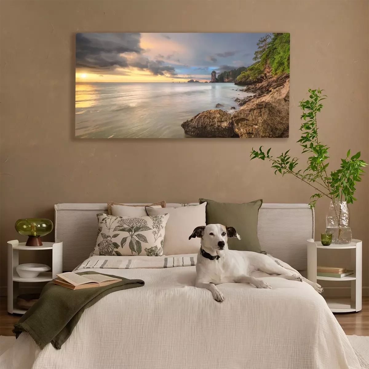 Das Motiv wird auf eine qualitativ hochwertige Leinwand gedruckt, die auf einen Blendrahmen gezogen wird. Da der Aufdruck die Seitenkanten bedeckt, muss das Bild nicht zusätzlich eingerahmt werden. Wir empfehlen außerdem Kompositionen aus mehreren Bildern, die ein harmonisches Ganzes bilden.