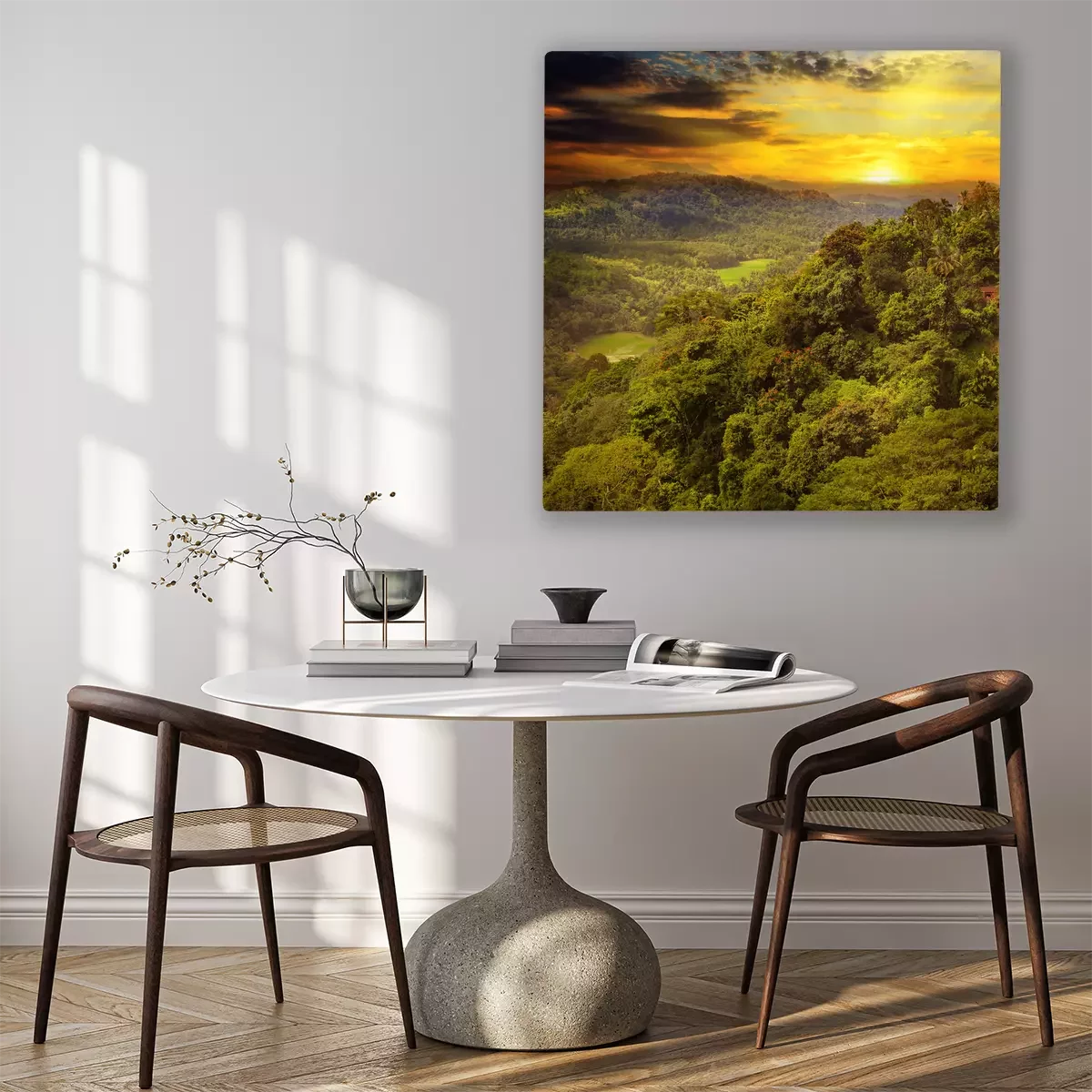 Das Motiv wird auf eine qualitativ hochwertige Leinwand gedruckt, die auf einen Blendrahmen gezogen wird. Da der Aufdruck die Seitenkanten bedeckt, muss das Bild nicht zusätzlich eingerahmt werden. Wir empfehlen außerdem Kompositionen aus mehreren Bildern, die ein harmonisches Ganzes bilden.