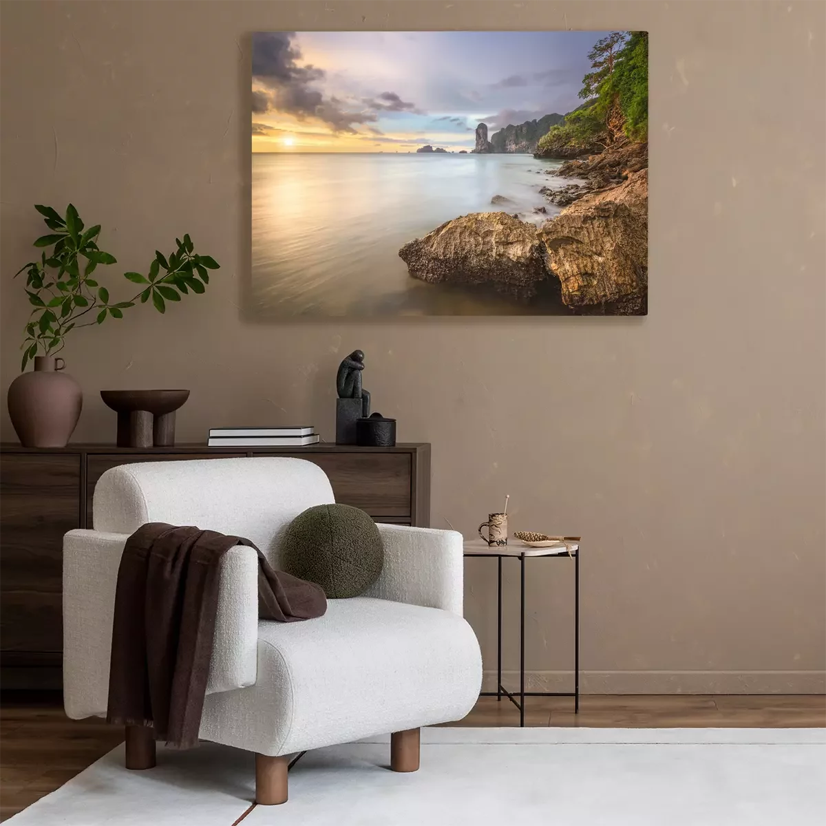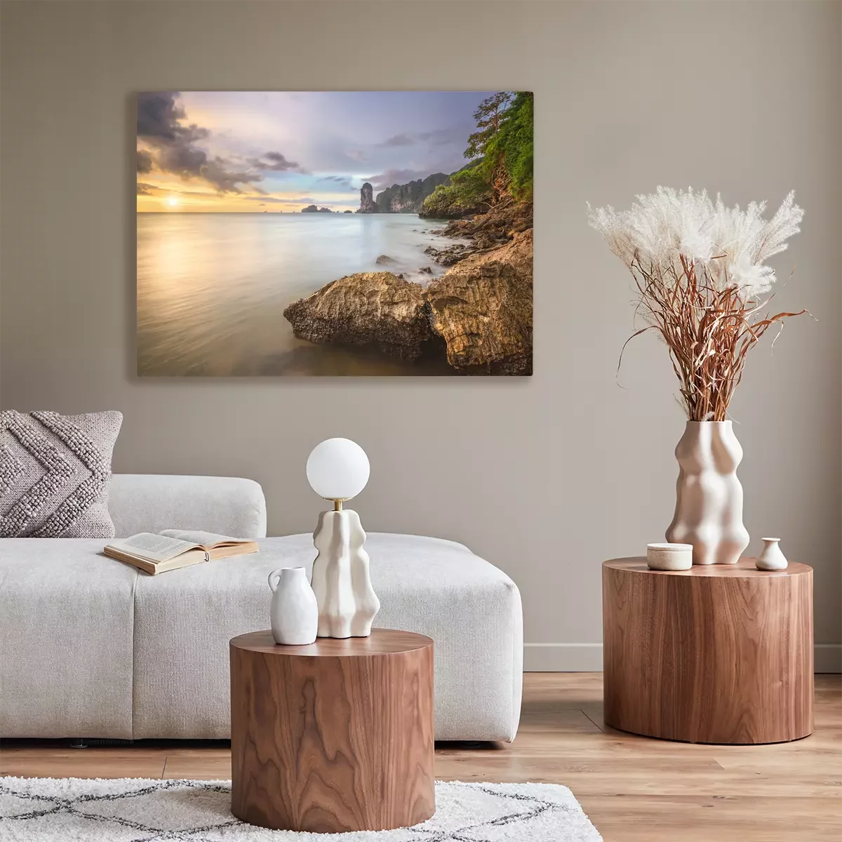 Das Motiv wird auf eine qualitativ hochwertige Leinwand gedruckt, die auf einen Blendrahmen gezogen wird. Da der Aufdruck die Seitenkanten bedeckt, muss das Bild nicht zusätzlich eingerahmt werden. Wir empfehlen außerdem Kompositionen aus mehreren Bildern, die ein harmonisches Ganzes bilden.