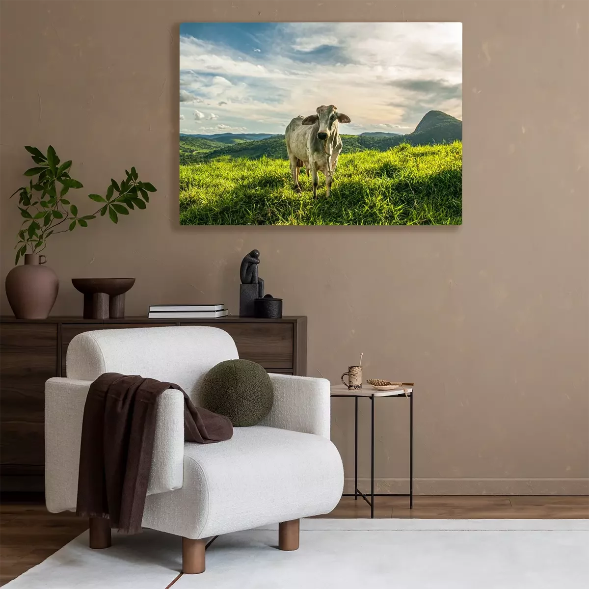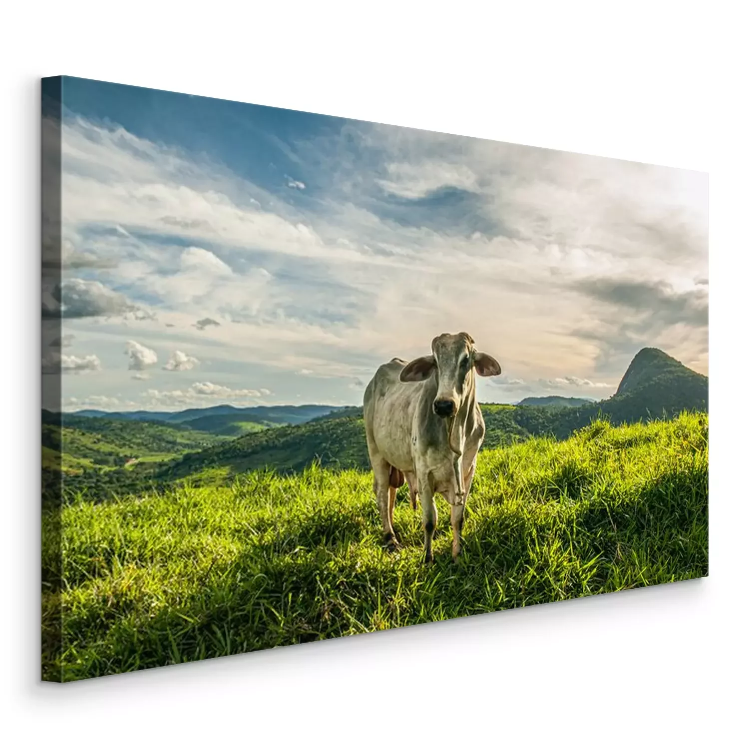 Bild Landschaft mit Kuh auf einer grünen Weide