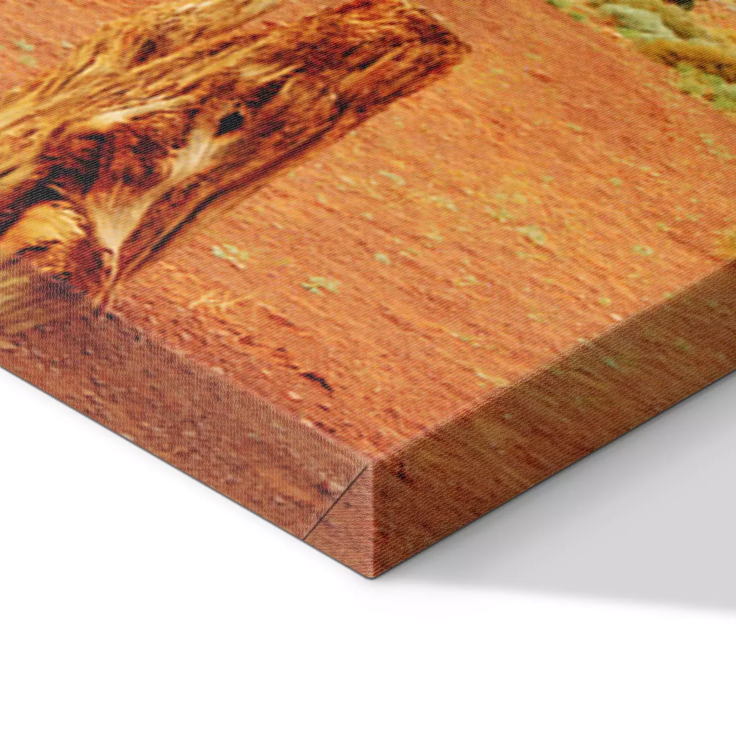 Das Motiv wird auf eine qualitativ hochwertige Leinwand gedruckt, die auf einen Blendrahmen gezogen wird. Da der Aufdruck die Seitenkanten bedeckt, muss das Bild nicht zusätzlich eingerahmt werden. Wir empfehlen außerdem Kompositionen aus mehreren Bildern, die ein harmonisches Ganzes bilden.