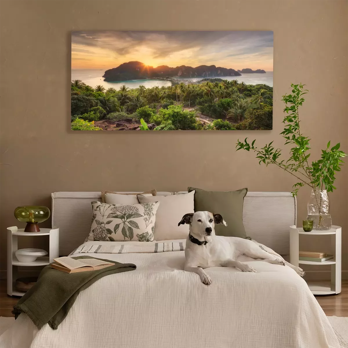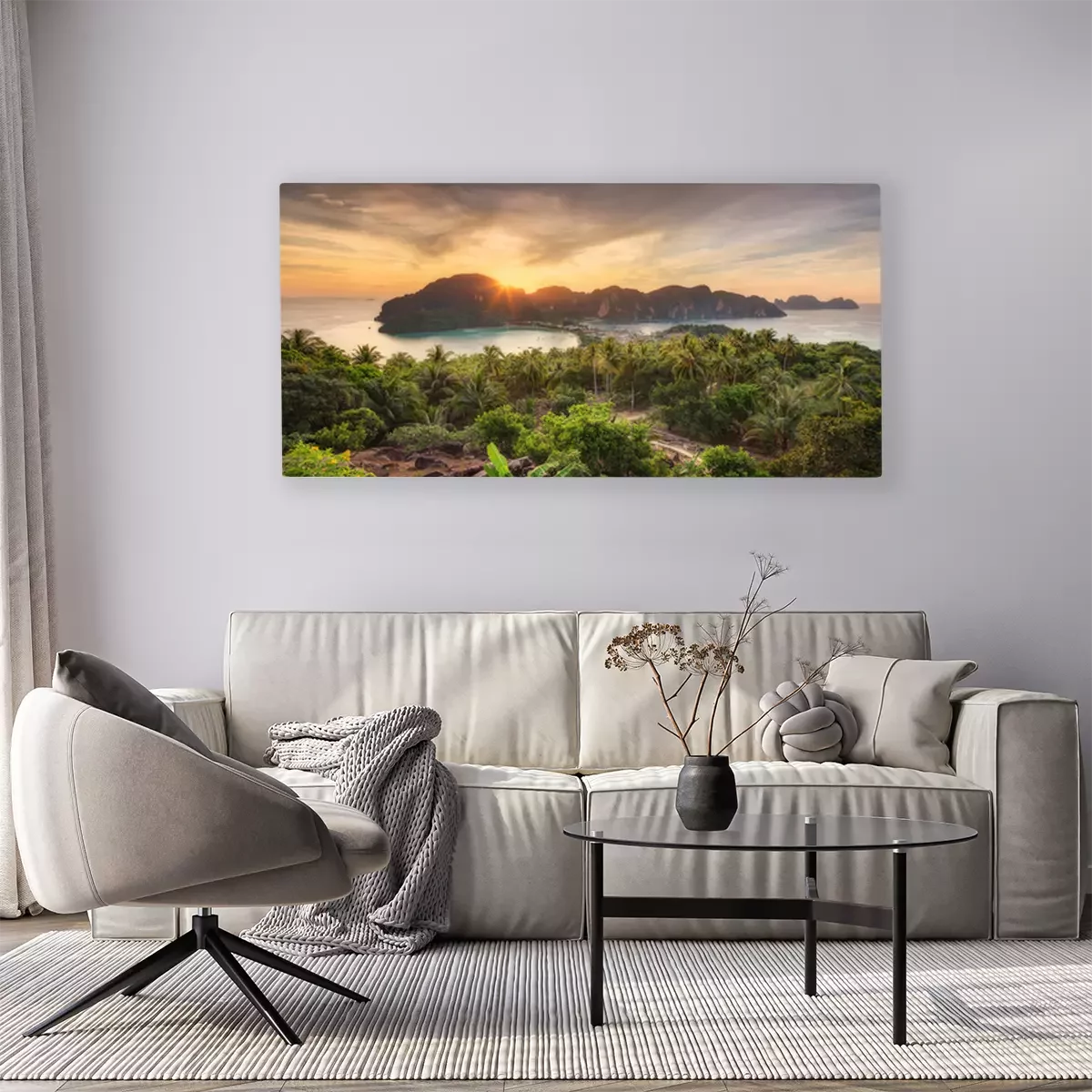 Das Motiv wird auf eine qualitativ hochwertige Leinwand gedruckt, die auf einen Blendrahmen gezogen wird. Da der Aufdruck die Seitenkanten bedeckt, muss das Bild nicht zusätzlich eingerahmt werden. Wir empfehlen außerdem Kompositionen aus mehreren Bildern, die ein harmonisches Ganzes bilden.