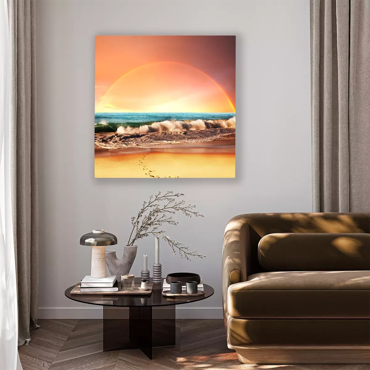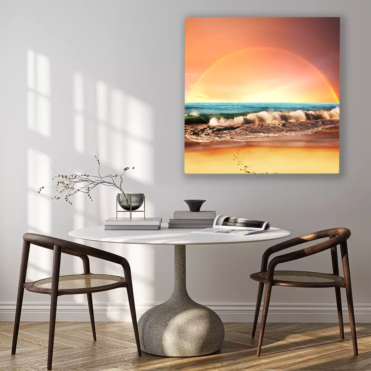 Das Motiv wird auf eine qualitativ hochwertige Leinwand gedruckt, die auf einen Blendrahmen gezogen wird. Da der Aufdruck die Seitenkanten bedeckt, muss das Bild nicht zusätzlich eingerahmt werden. Wir empfehlen außerdem Kompositionen aus mehreren Bildern, die ein harmonisches Ganzes bilden.