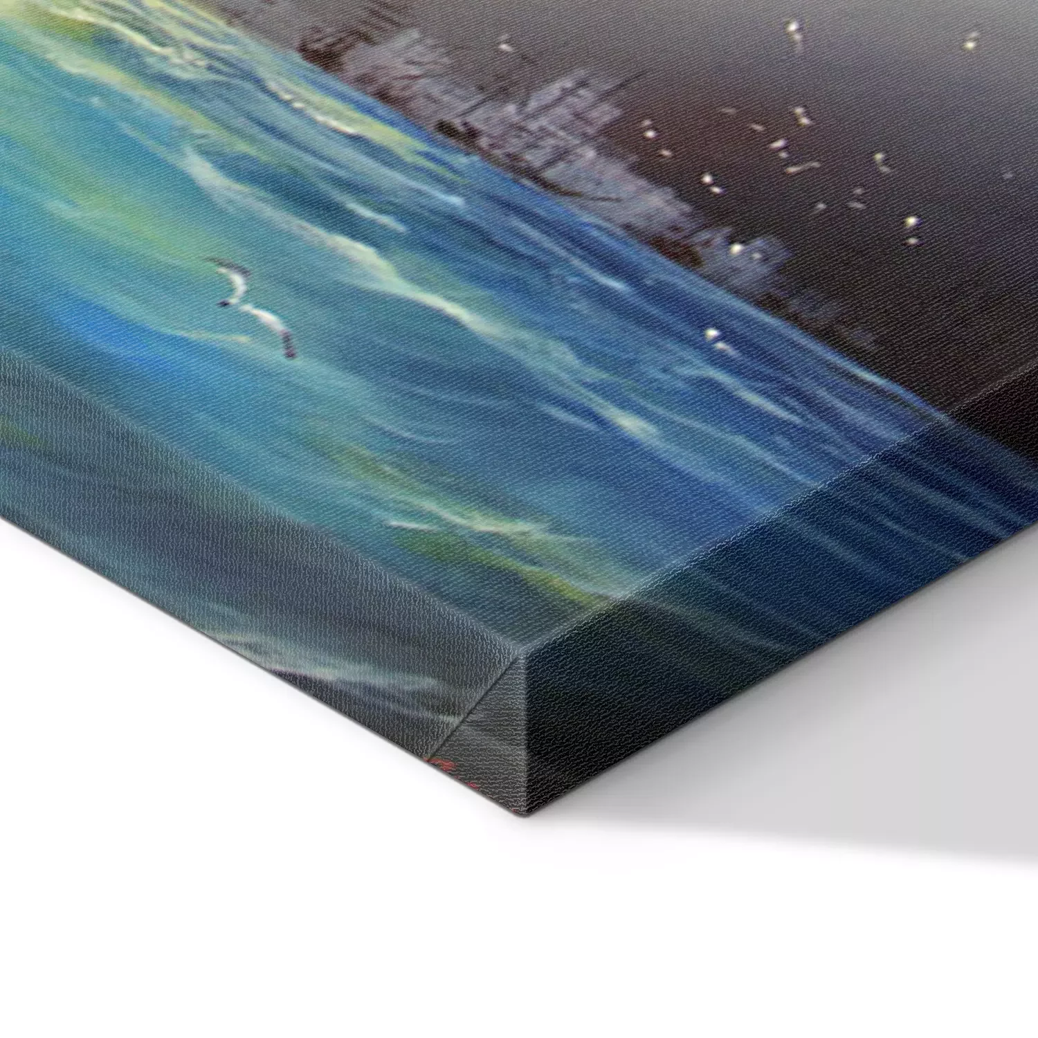 Das Motiv wird auf eine qualitativ hochwertige Leinwand gedruckt, die auf einen Blendrahmen gezogen wird. Da der Aufdruck die Seitenkanten bedeckt, muss das Bild nicht zusätzlich eingerahmt werden. Wir empfehlen außerdem Kompositionen aus mehreren Bildern, die ein harmonisches Ganzes bilden.