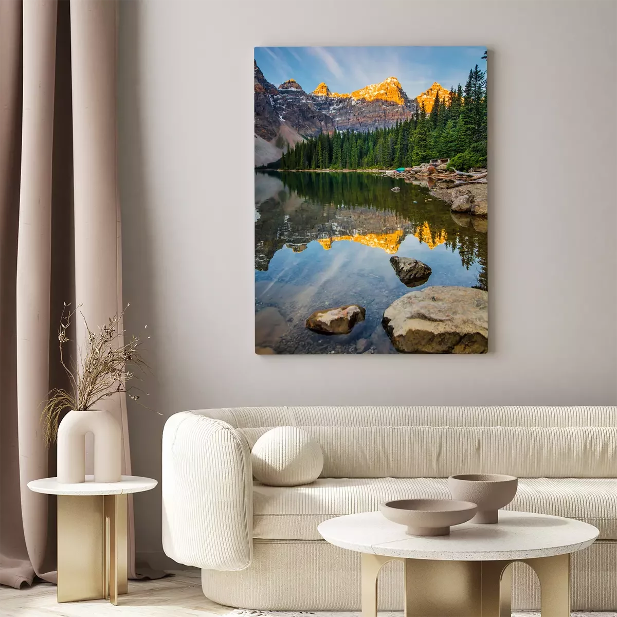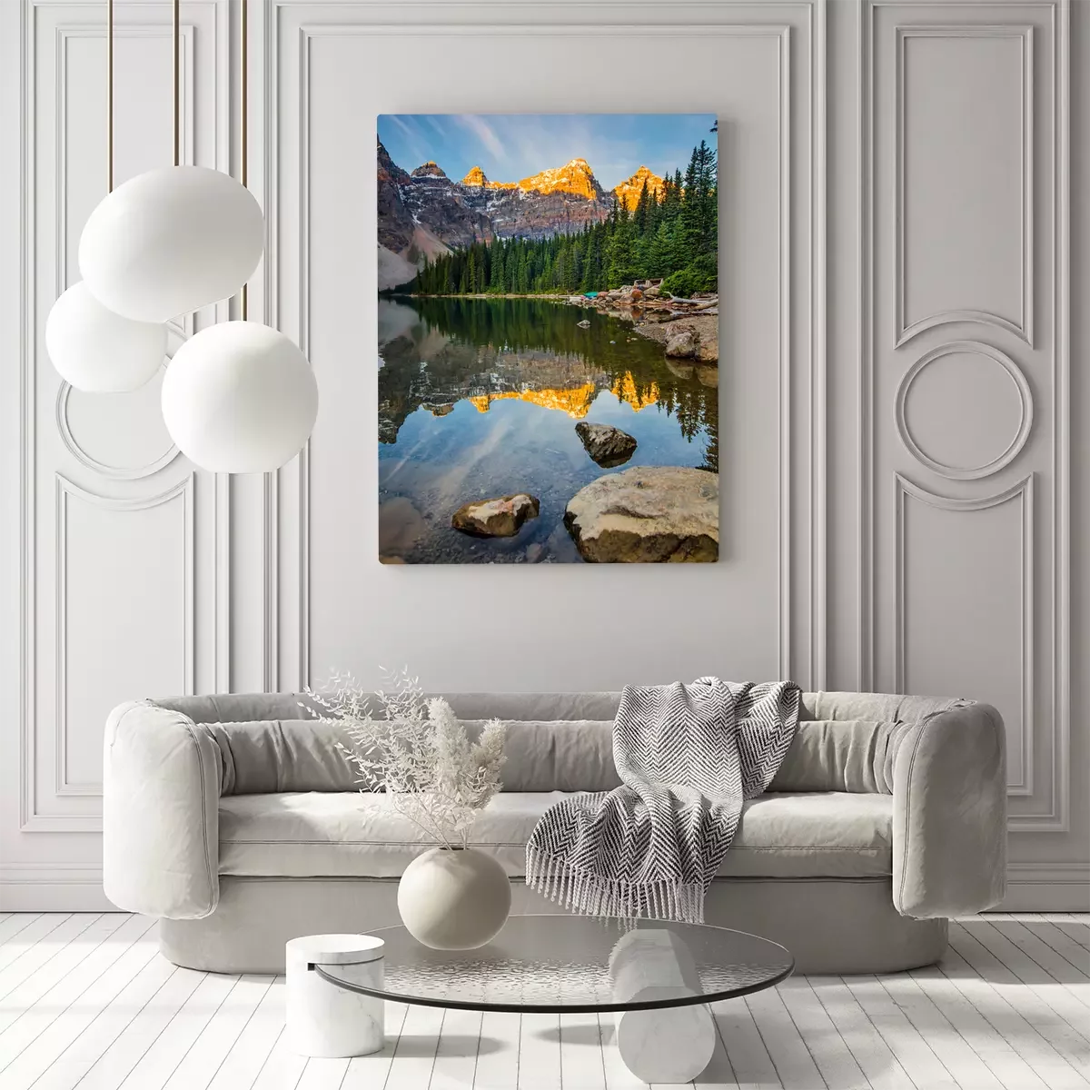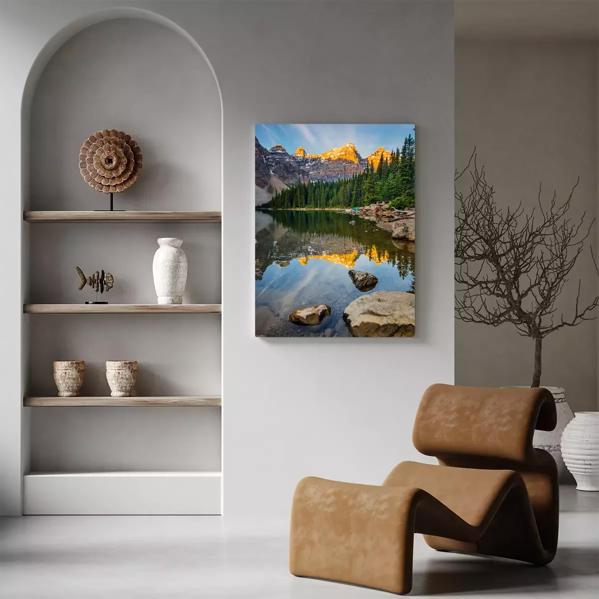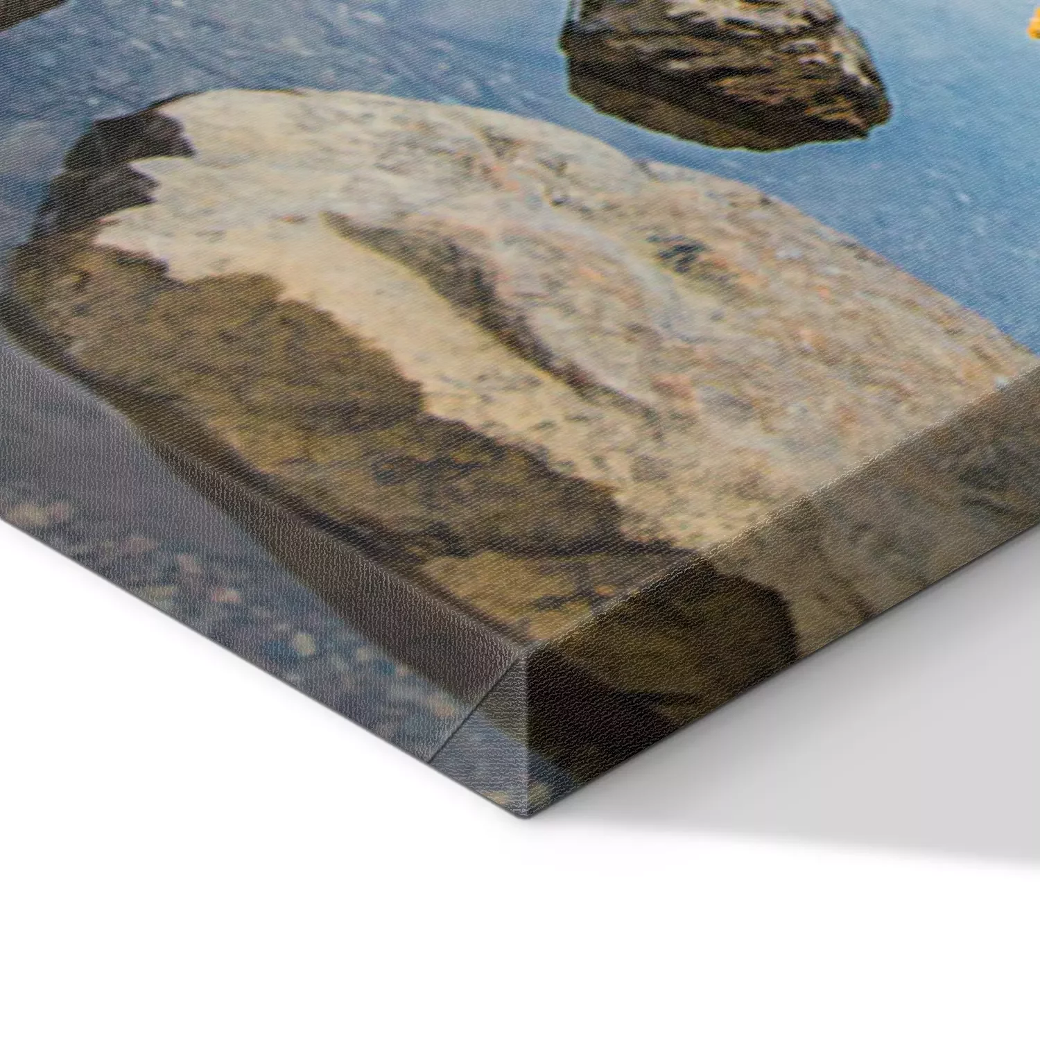 Das Motiv wird auf eine qualitativ hochwertige Leinwand gedruckt, die auf einen Blendrahmen gezogen wird. Da der Aufdruck die Seitenkanten bedeckt, muss das Bild nicht zusätzlich eingerahmt werden. Wir empfehlen außerdem Kompositionen aus mehreren Bildern, die ein harmonisches Ganzes bilden.