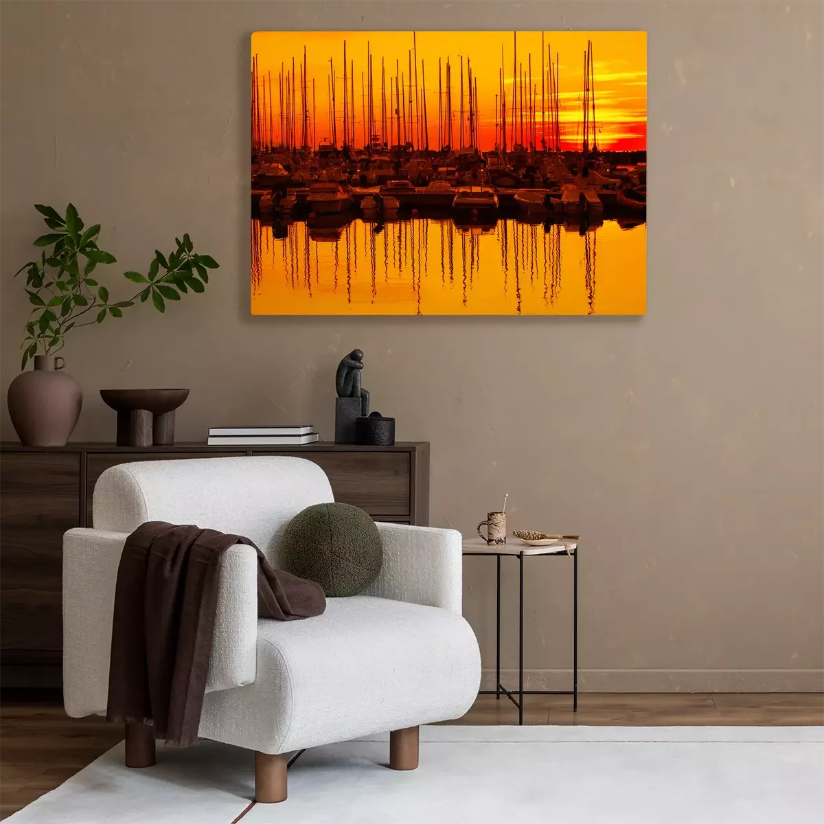 Bild Landschaft mit Sonnenuntergang und Yachten