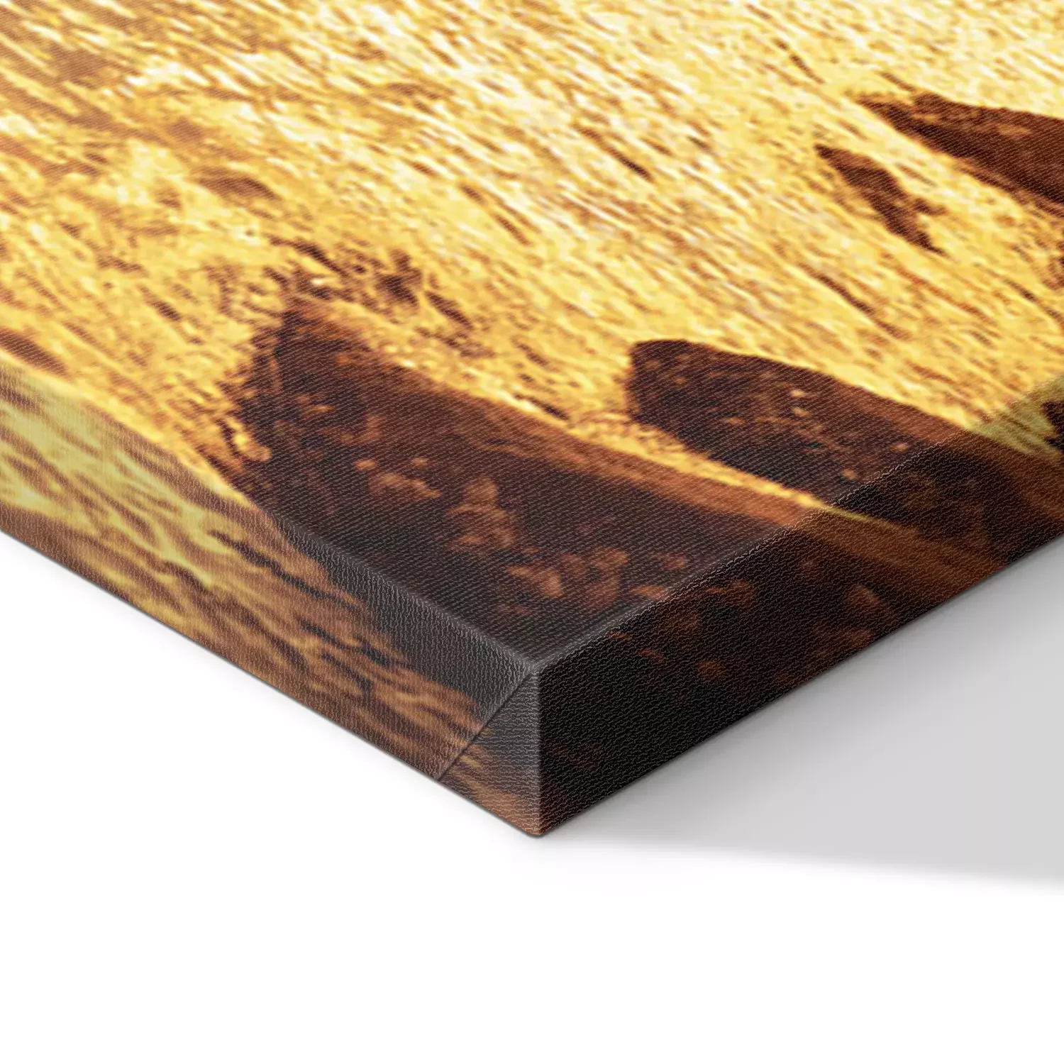 Das Motiv wird auf eine qualitativ hochwertige Leinwand gedruckt, die auf einen Blendrahmen gezogen wird. Da der Aufdruck die Seitenkanten bedeckt, muss das Bild nicht zusätzlich eingerahmt werden. Wir empfehlen außerdem Kompositionen aus mehreren Bildern, die ein harmonisches Ganzes bilden.