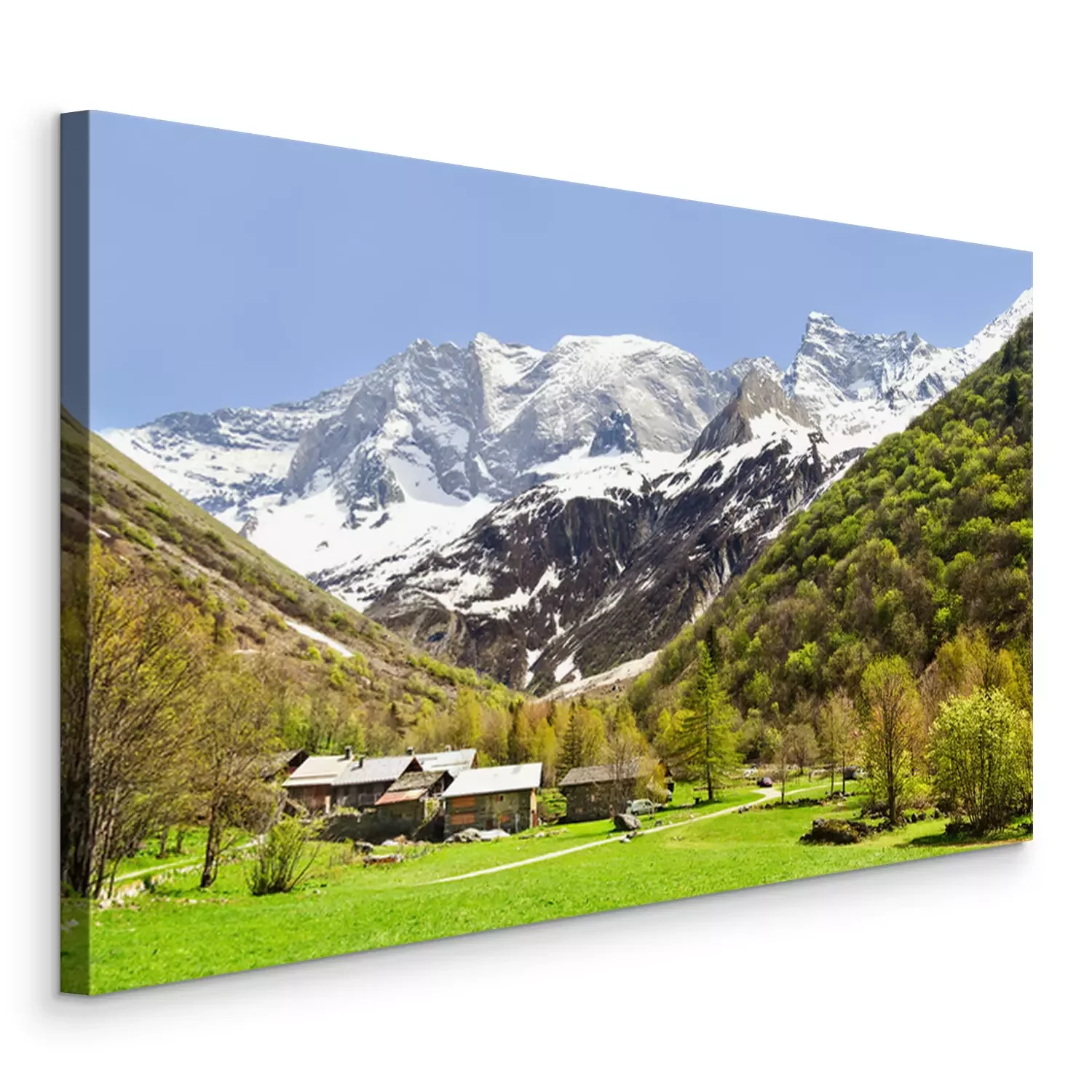 Bild: Landschaft von Häuschen am Fuße der Berge