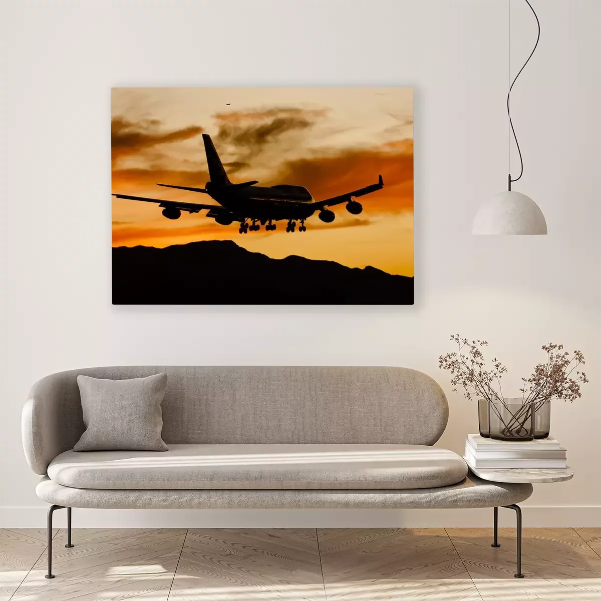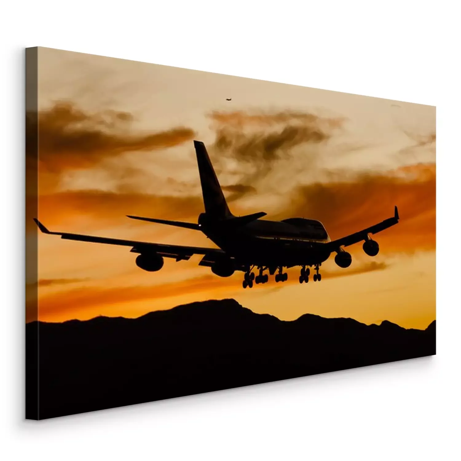 Bild Landung eines Flugzeugs in der untergehenden Sonne