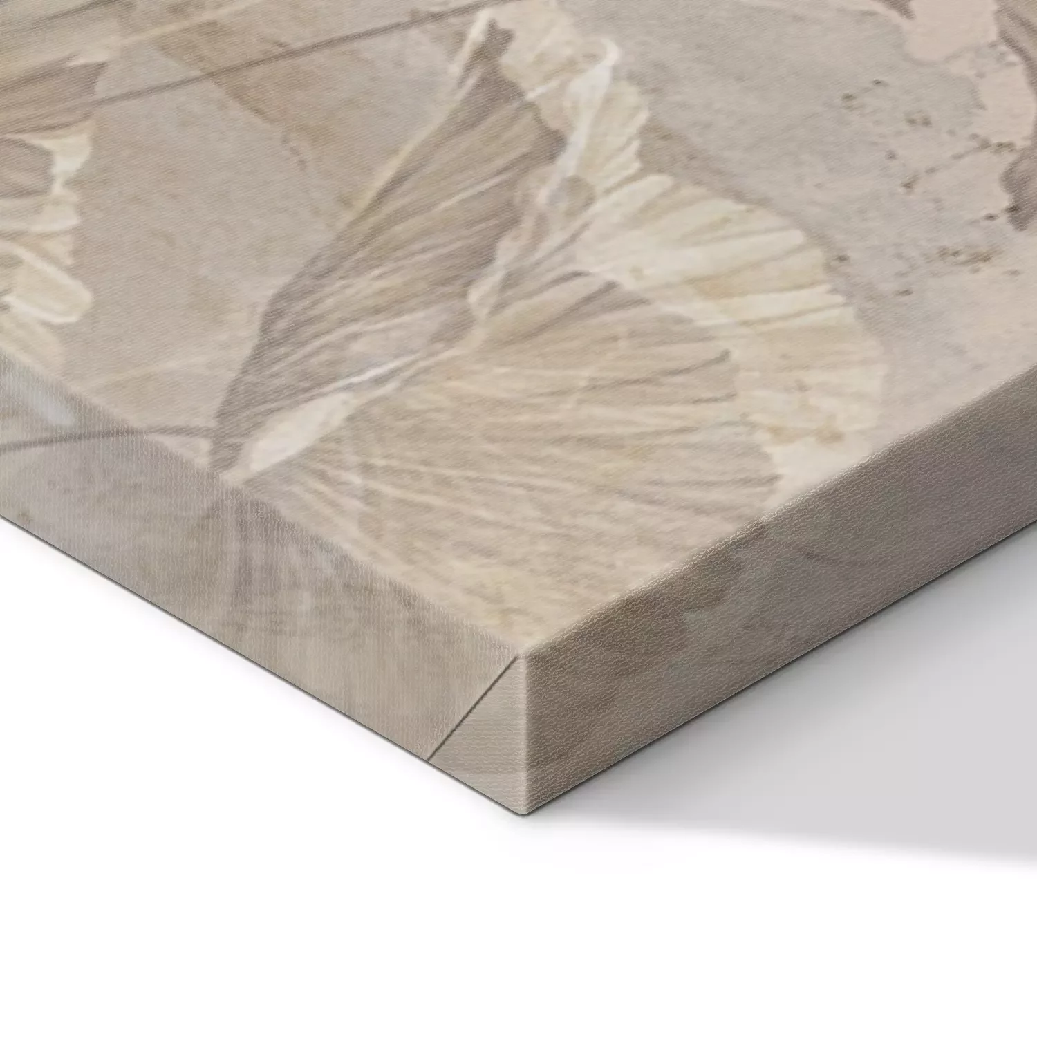 Bild: Large art painted leaves on a textured wall, in pastel colors, photo wallpaper for the interior