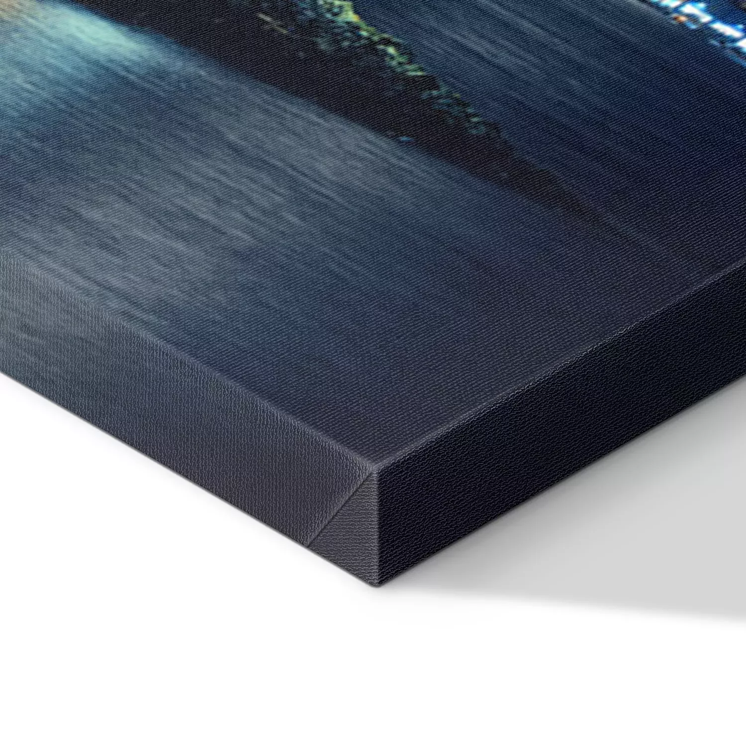 Das Motiv wird auf eine qualitativ hochwertige Leinwand gedruckt, die auf einen Blendrahmen gezogen wird. Da der Aufdruck die Seitenkanten bedeckt, muss das Bild nicht zusätzlich eingerahmt werden. Wir empfehlen außerdem Kompositionen aus mehreren Bildern, die ein harmonisches Ganzes bilden.