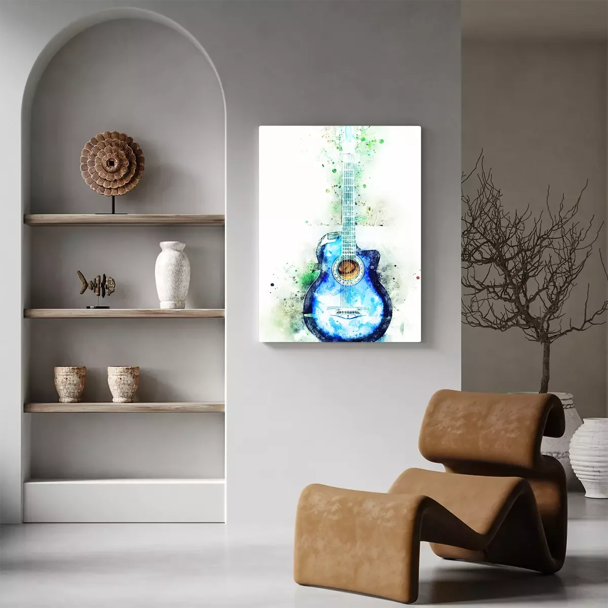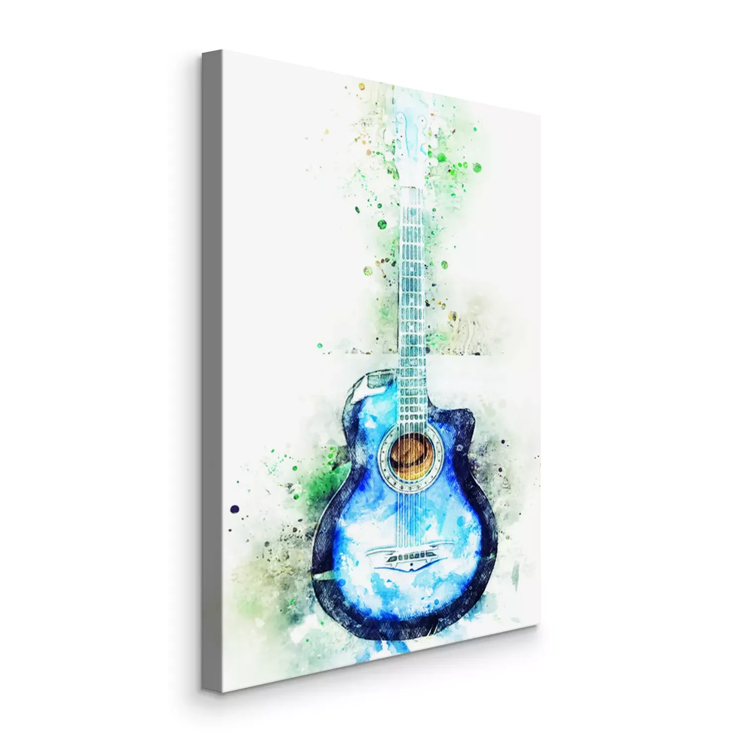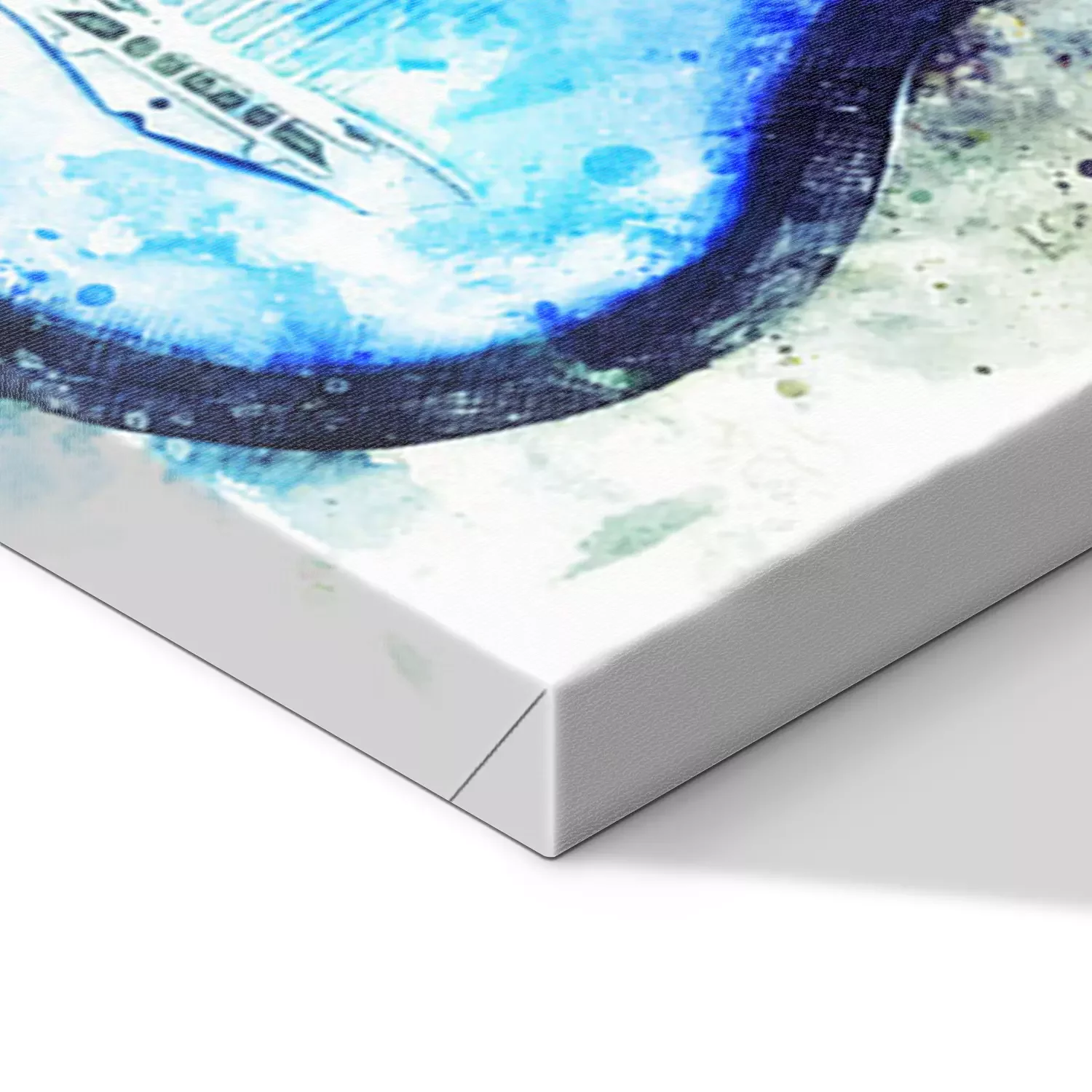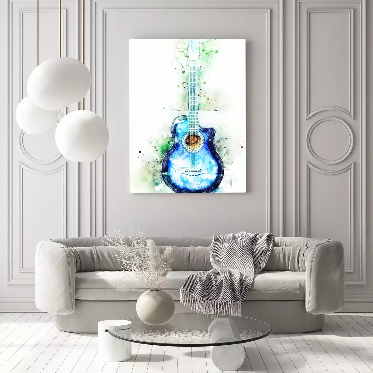 Aquarell einer blauen Gitarre auf weißem Hintergrund