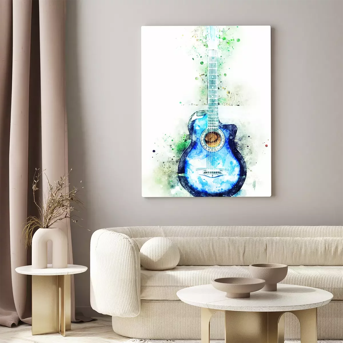 Akustikgitarre mit Aquarellfarben gemalt Grafik