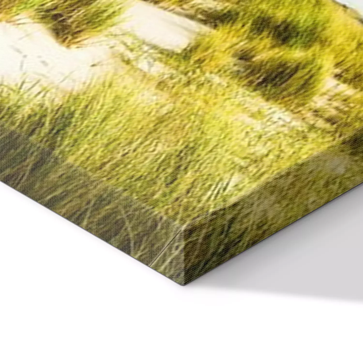 Das Motiv wird auf eine qualitativ hochwertige Leinwand gedruckt, die auf einen Blendrahmen gezogen wird. Da der Aufdruck die Seitenkanten bedeckt, muss das Bild nicht zusätzlich eingerahmt werden. Wir empfehlen außerdem Kompositionen aus mehreren Bildern, die ein harmonisches Ganzes bilden.
