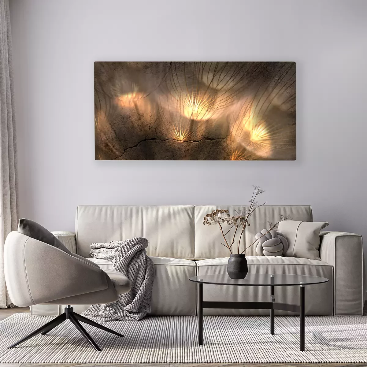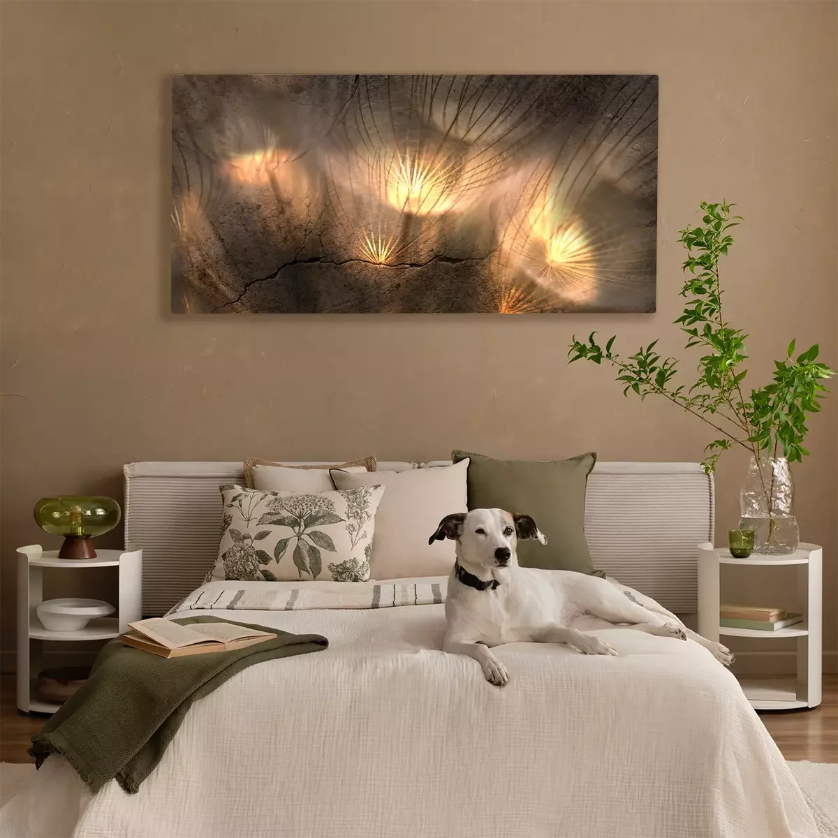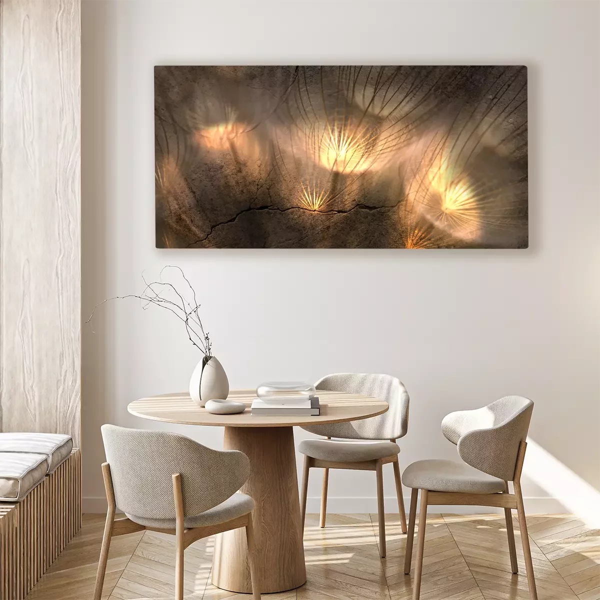 Löwenzahn im goldenen licht vor dem hintergrund eines felsens
