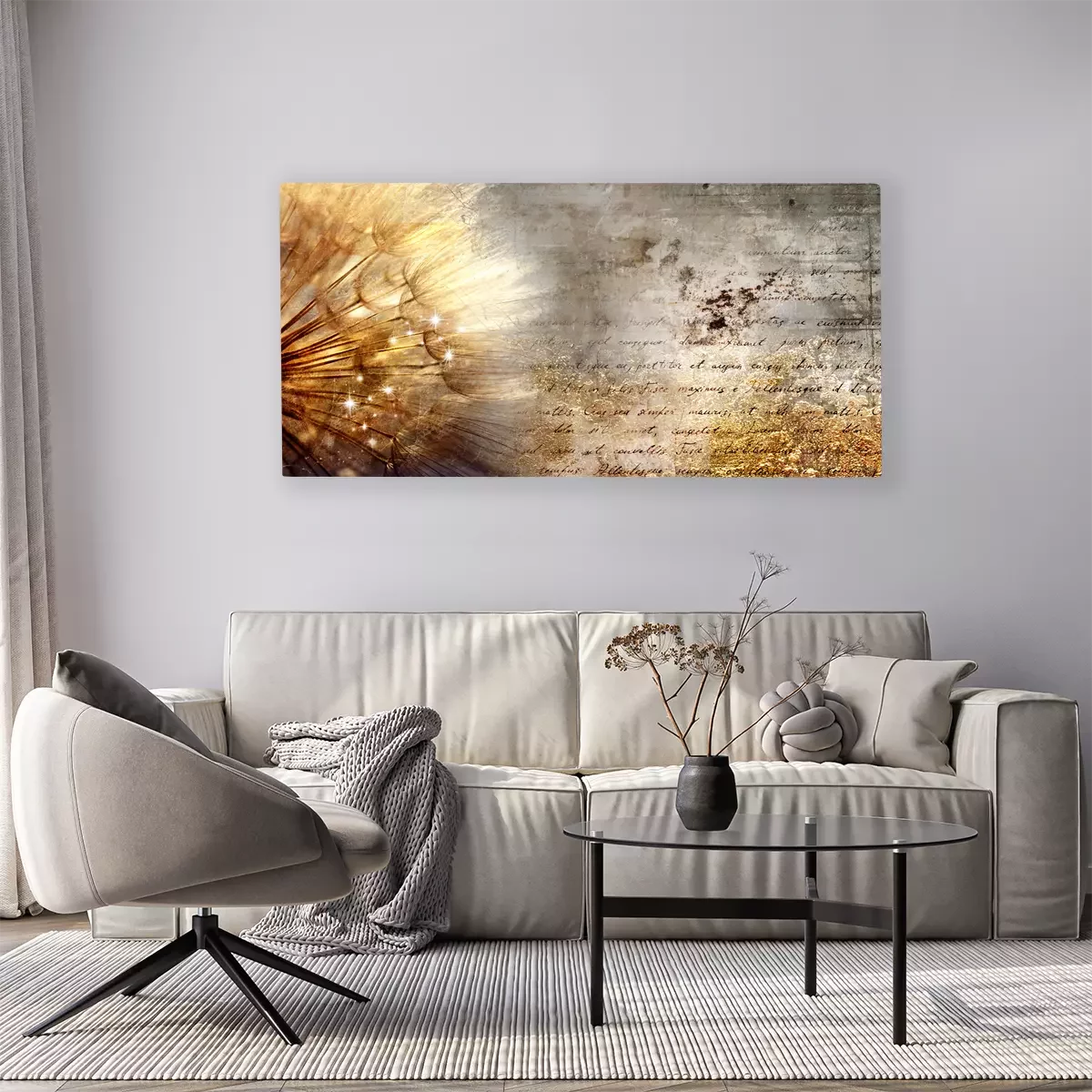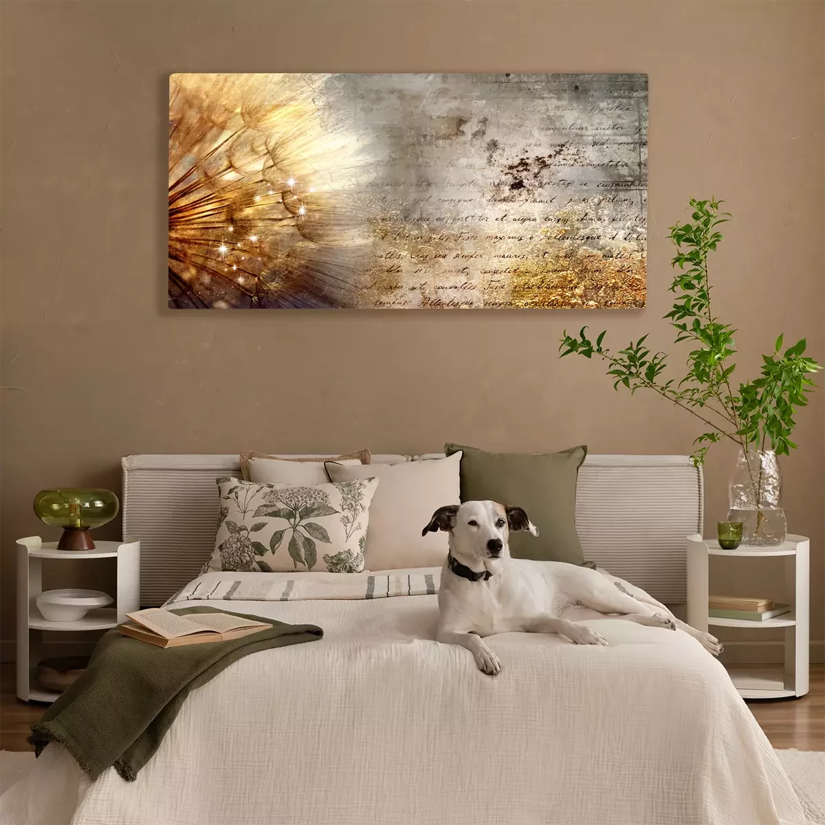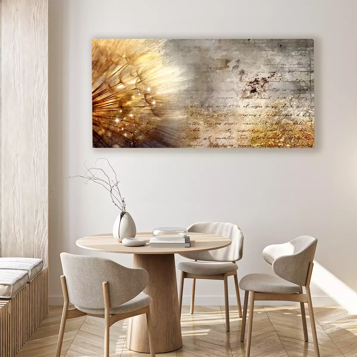 Löwenzahn im sonnenlicht auf typografischem hintergrund