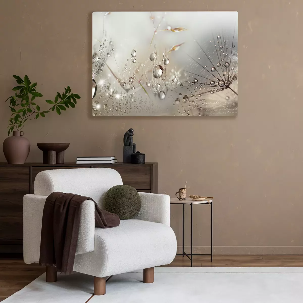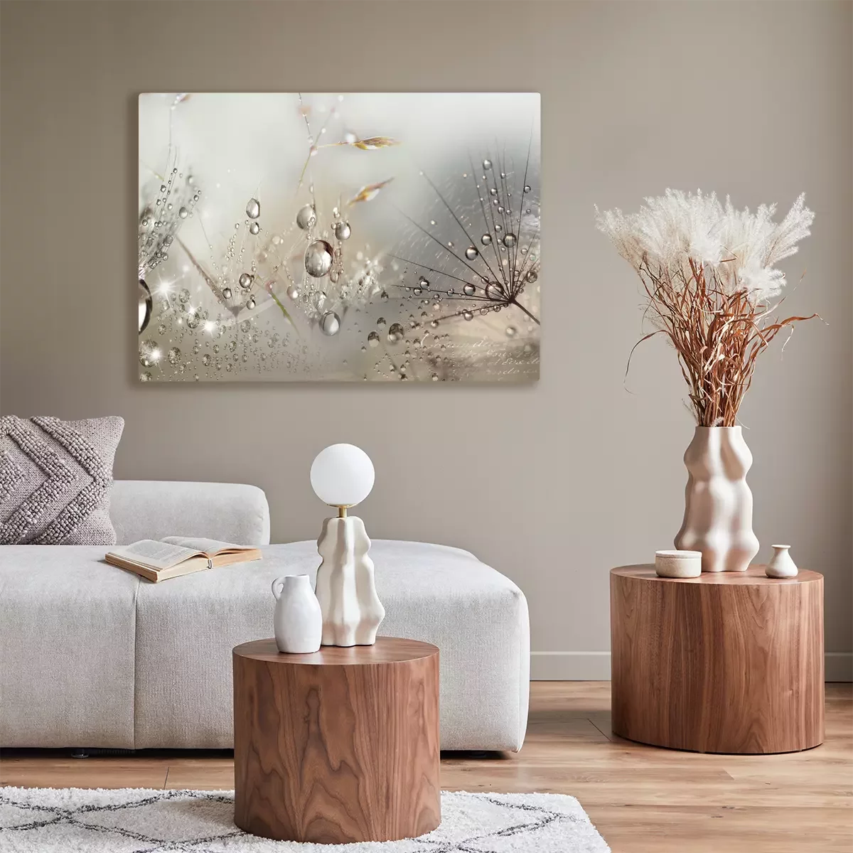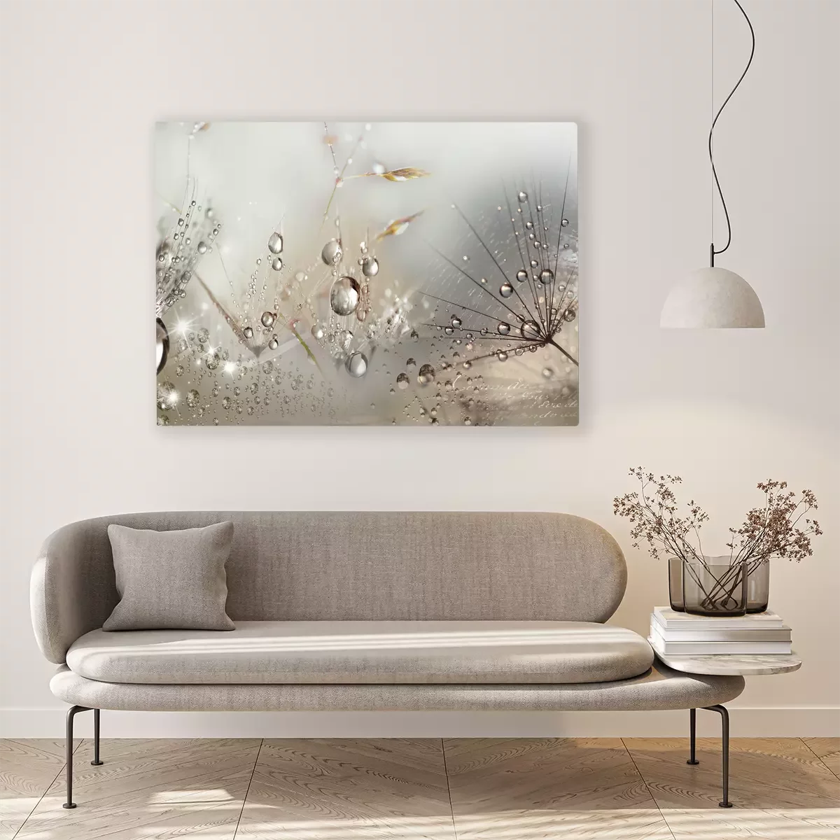 Löwenzahn mit tautropfen in einem leuchtenden foto