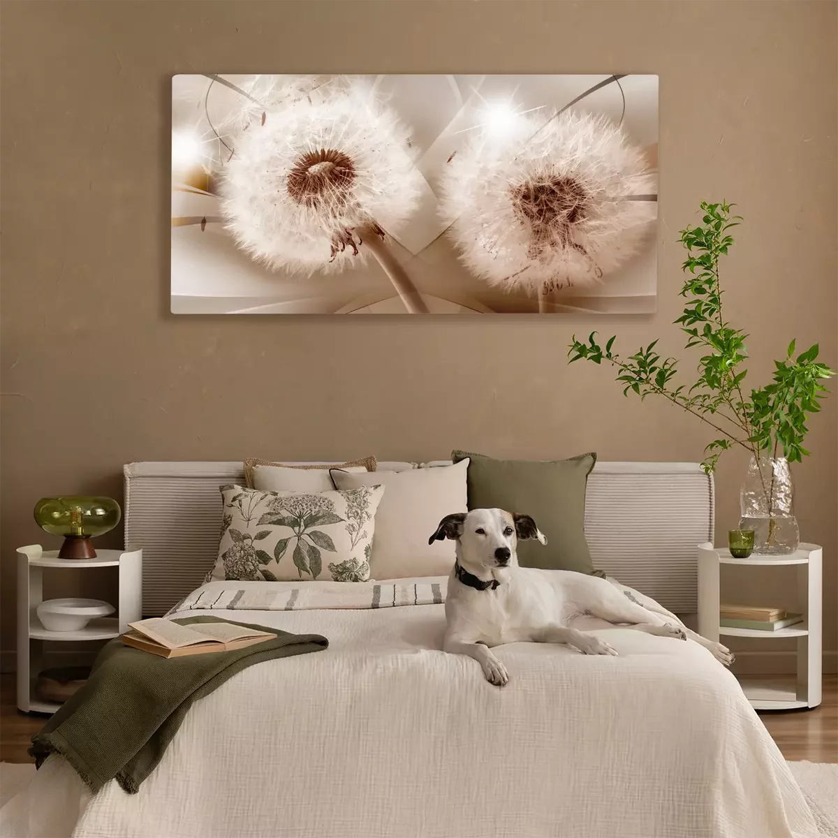 Löwenzahn vor einem leuchtenden braun-cremefarbenen hintergrund