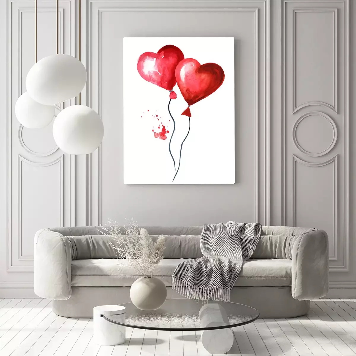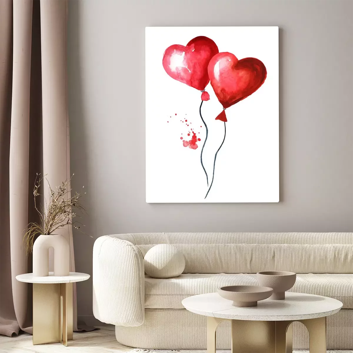 Bild Love and romance illustration. Valentines red heart balloons. Watercolor hand drawn illustration, isolated on white background
