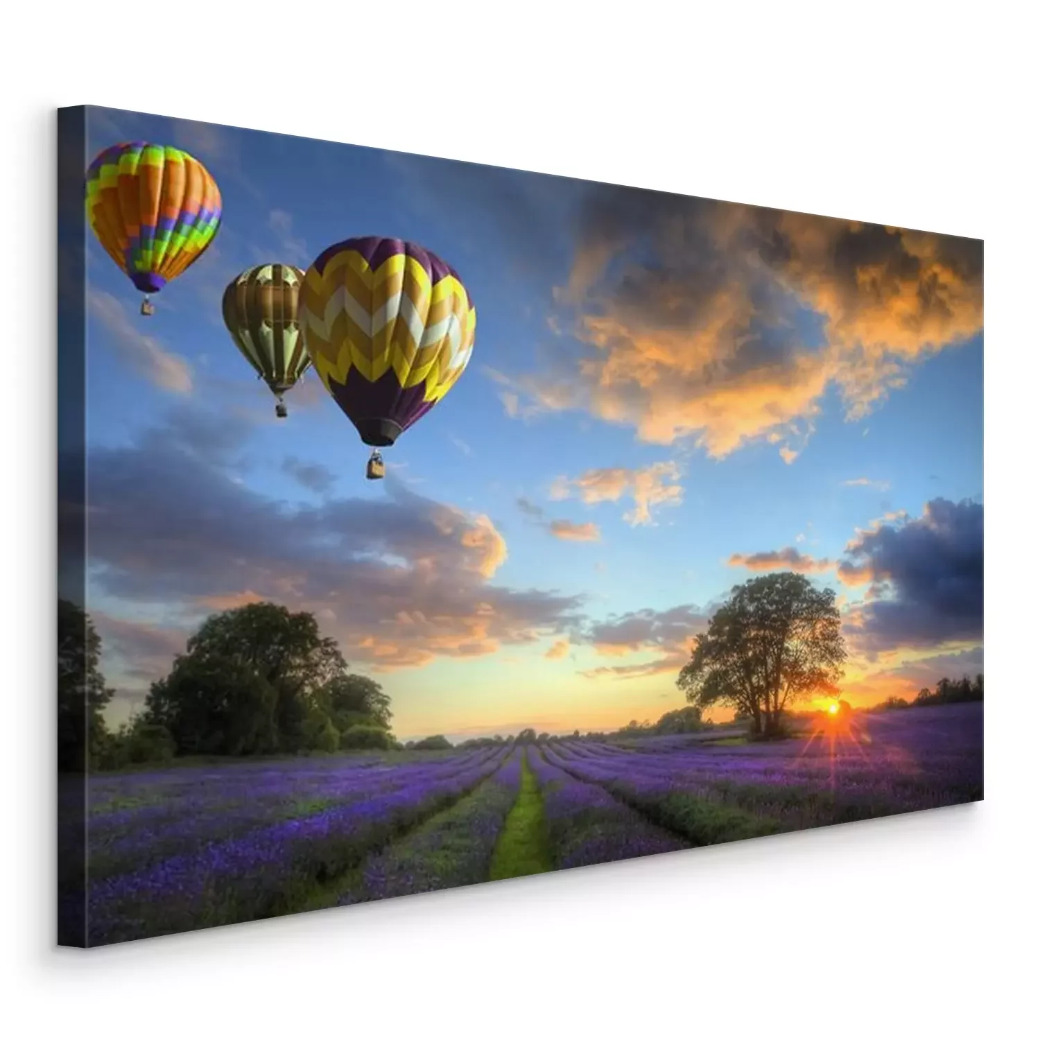 Atemberaubende Lavendelfeld Landschaft Sommer Sonnenuntergang mit Heißluft bal