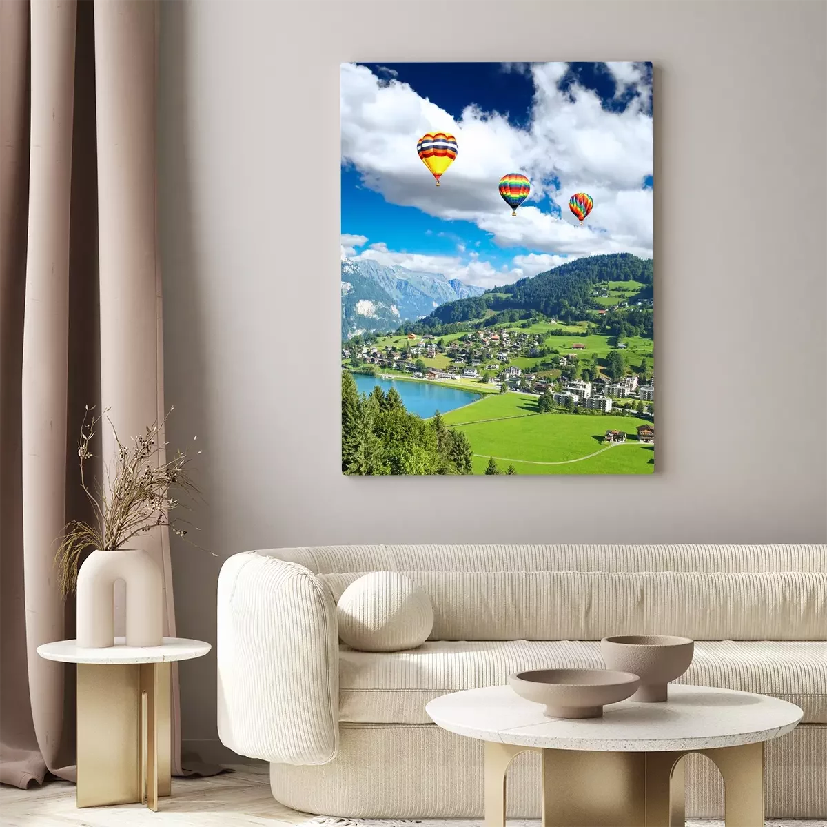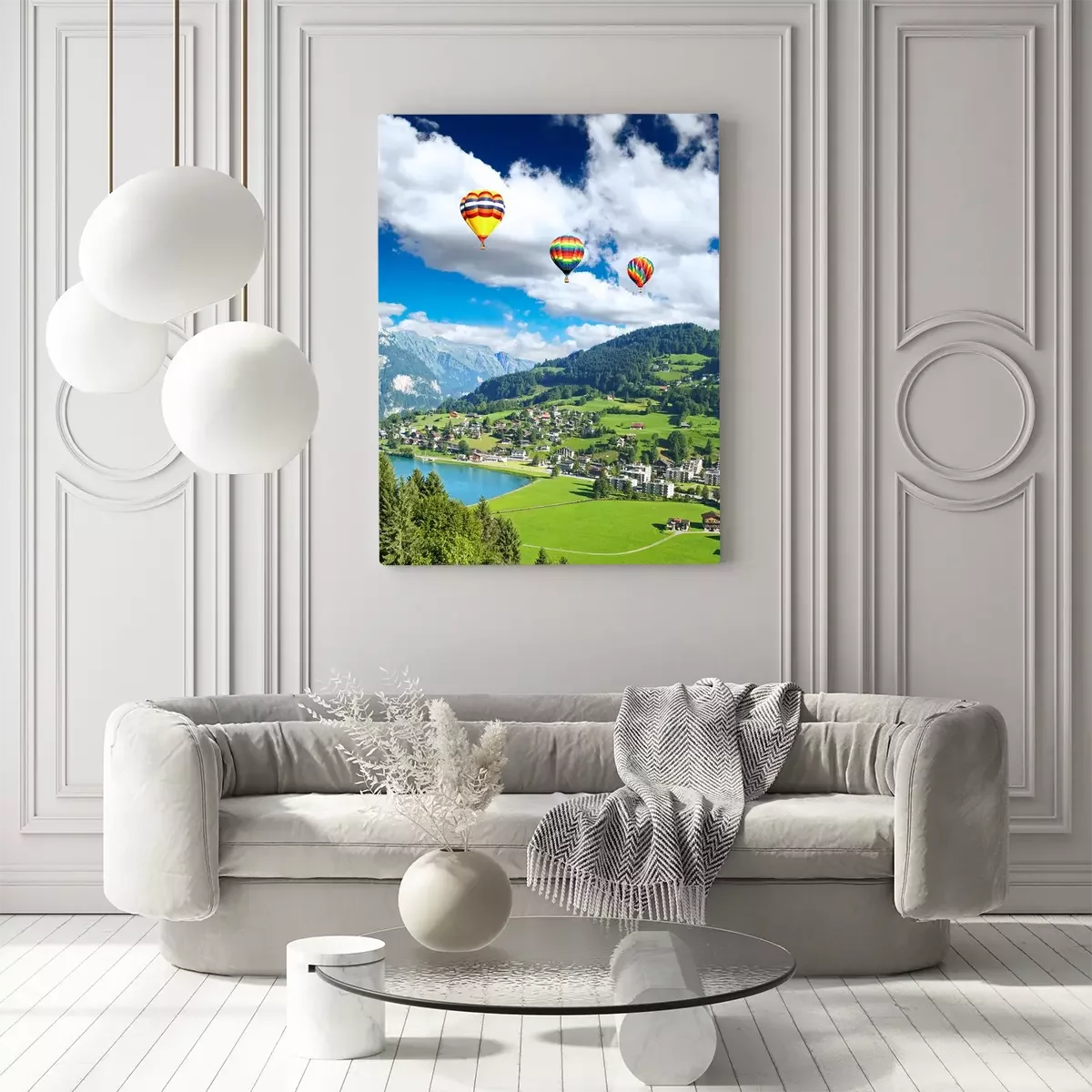 Bild Luftballons über einem kleinen Schweizer Dorf