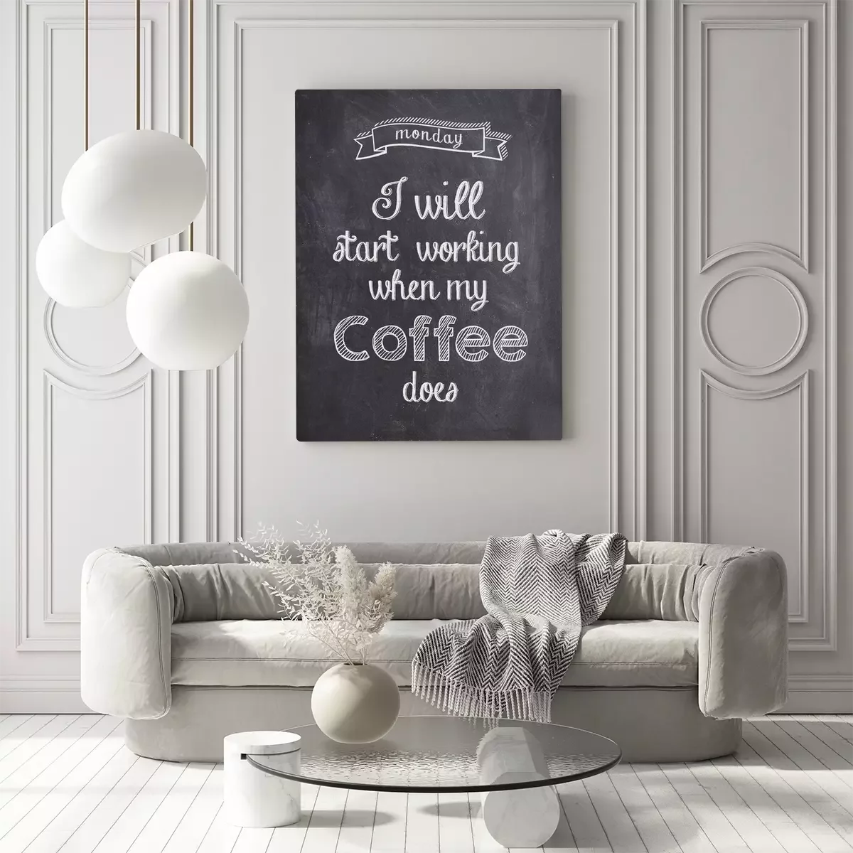 Bild: Lustige Aufschrift über Kaffee auf der Tafel