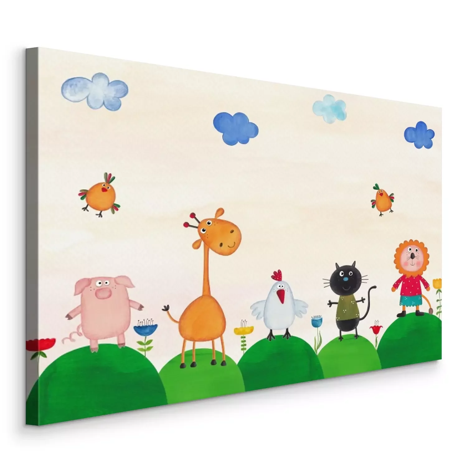 Bild Lustige Tiere auf grünen Hügeln