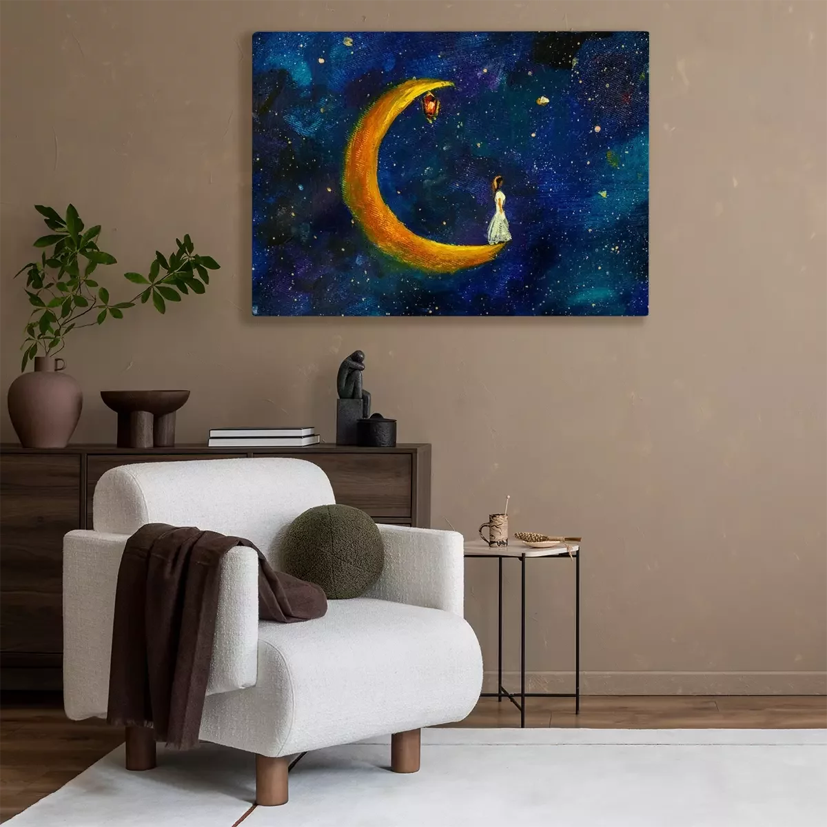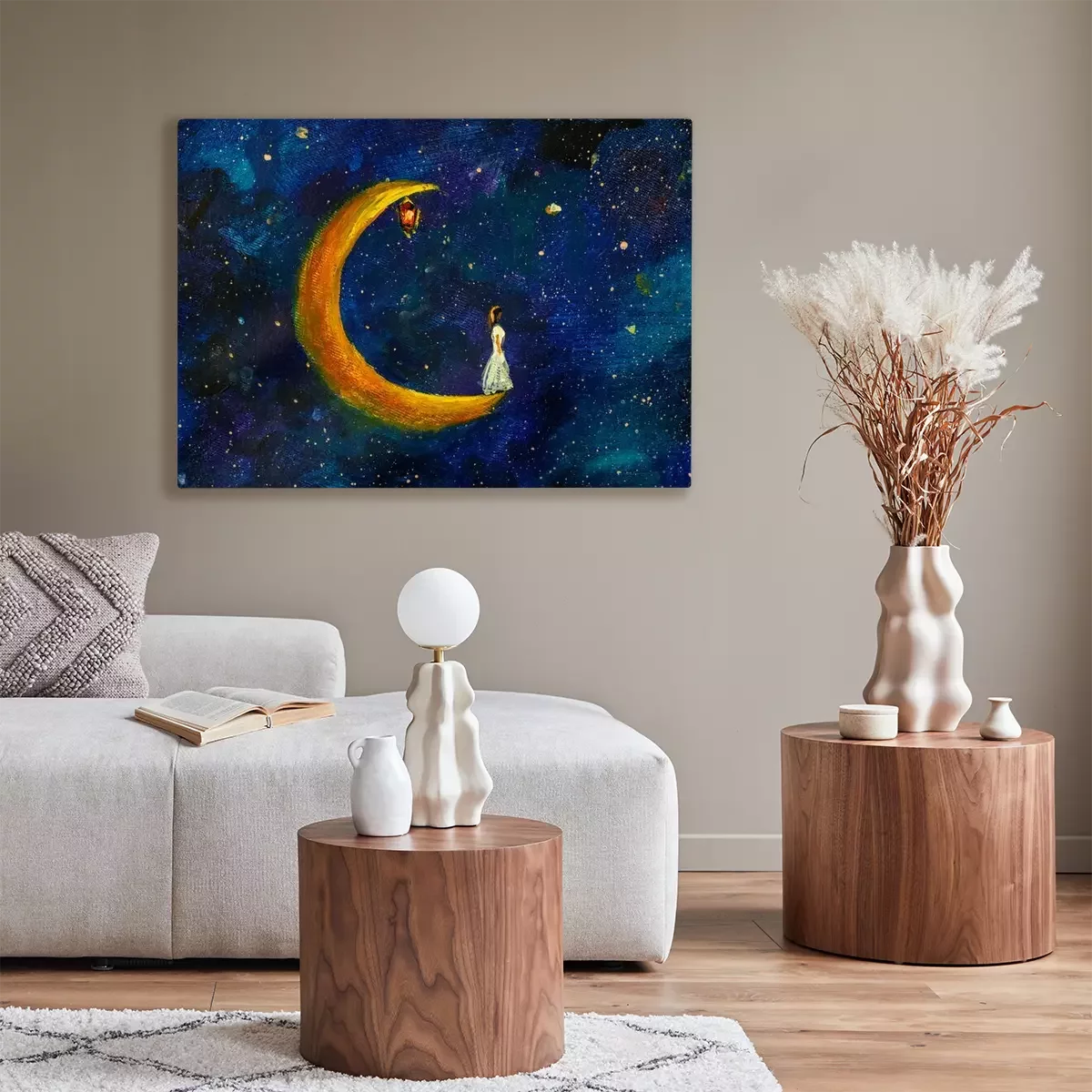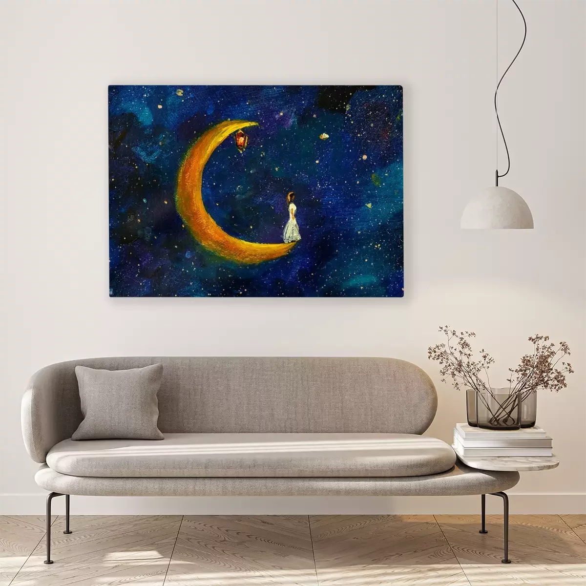 Bild: Mädchen im weißen Kleid auf dem Mond