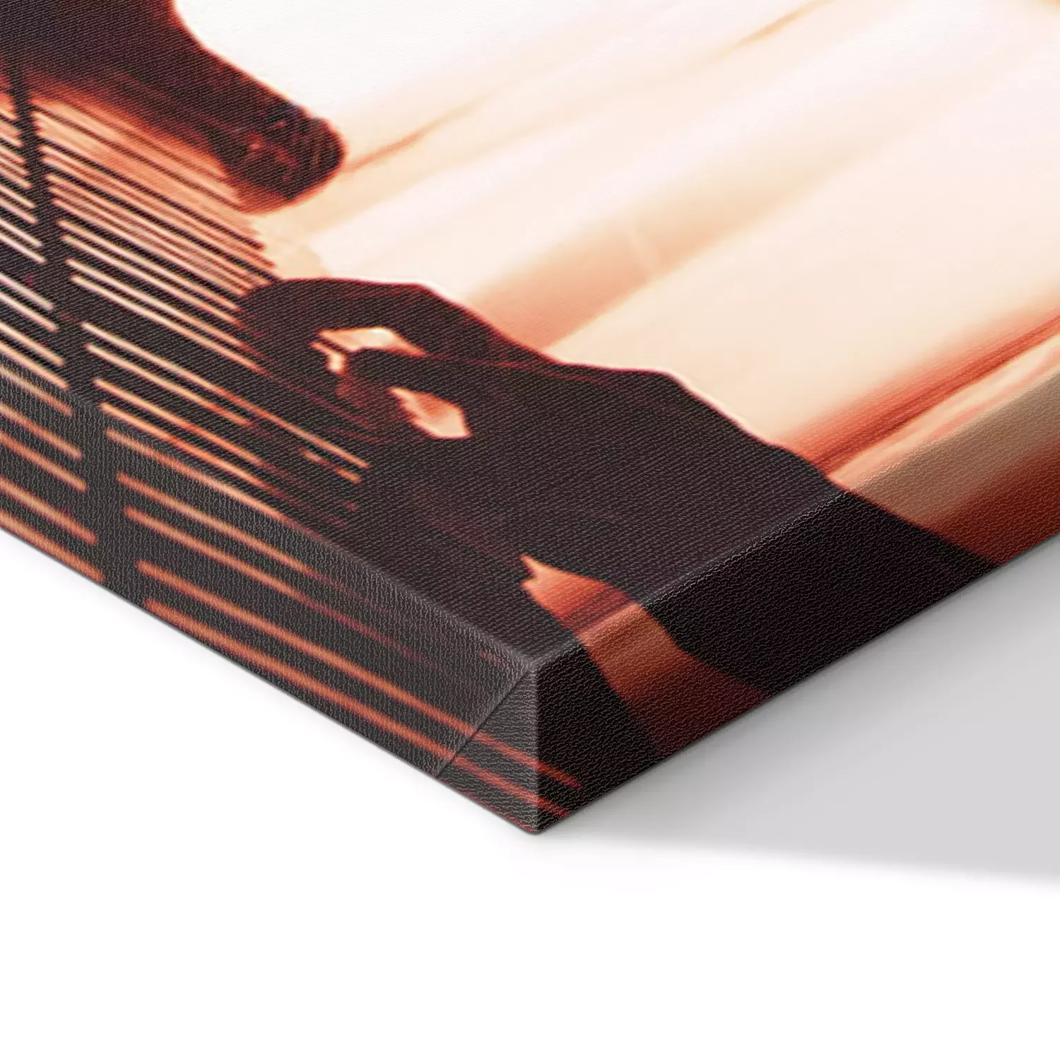 Das Motiv wird auf eine qualitativ hochwertige Leinwand gedruckt, die auf einen Blendrahmen gezogen wird. Da der Aufdruck die Seitenkanten bedeckt, muss das Bild nicht zusätzlich eingerahmt werden. Wir empfehlen außerdem Kompositionen aus mehreren Bildern, die ein harmonisches Ganzes bilden.