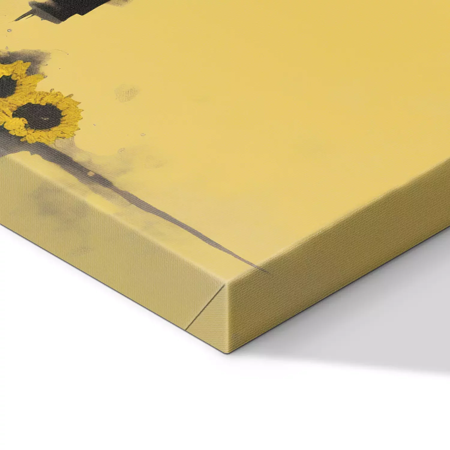 Mädchen und sonnenblumen auf gelbem hintergrund