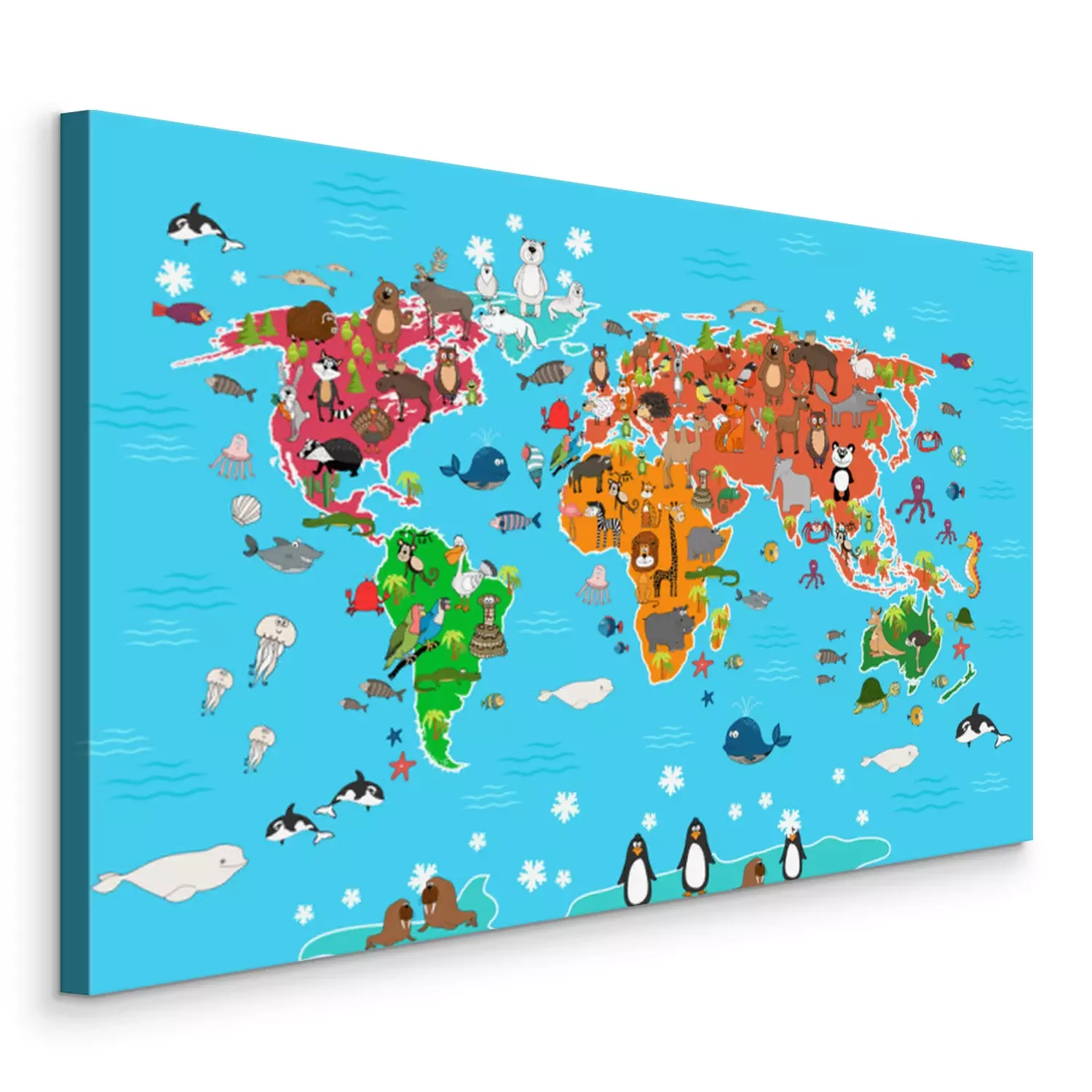 Bild Märchenhafte Tiere auf einer Weltkarte