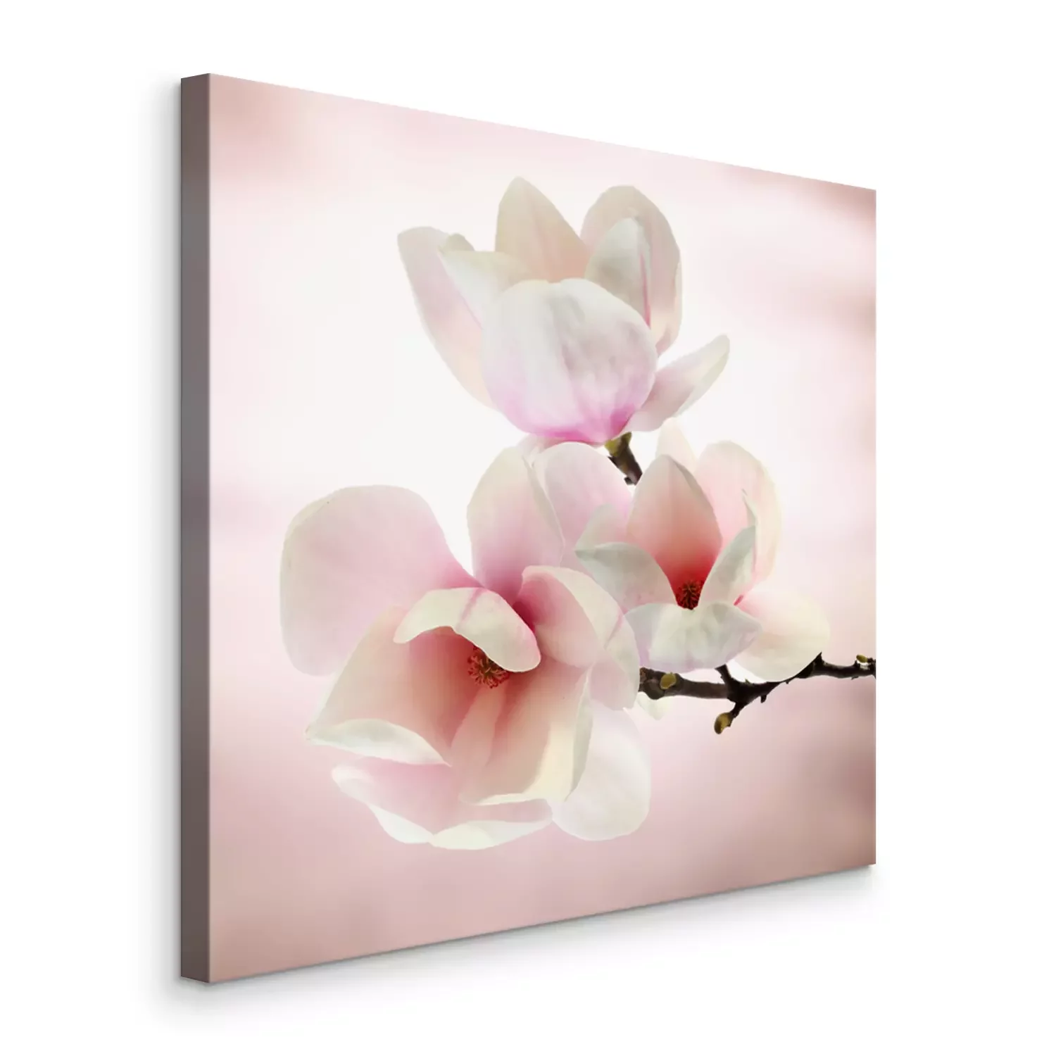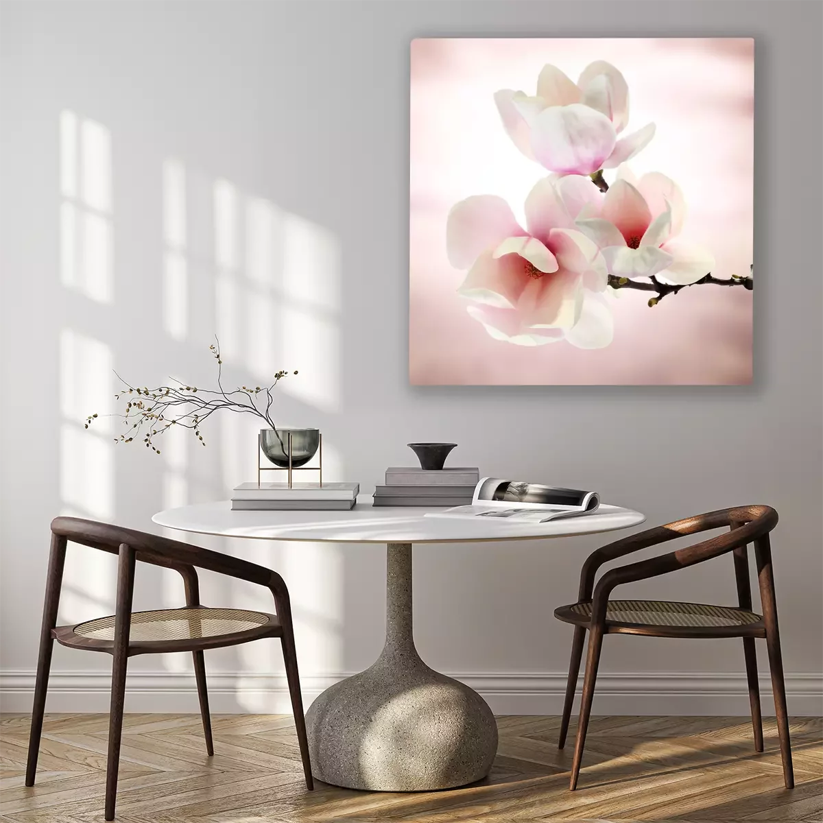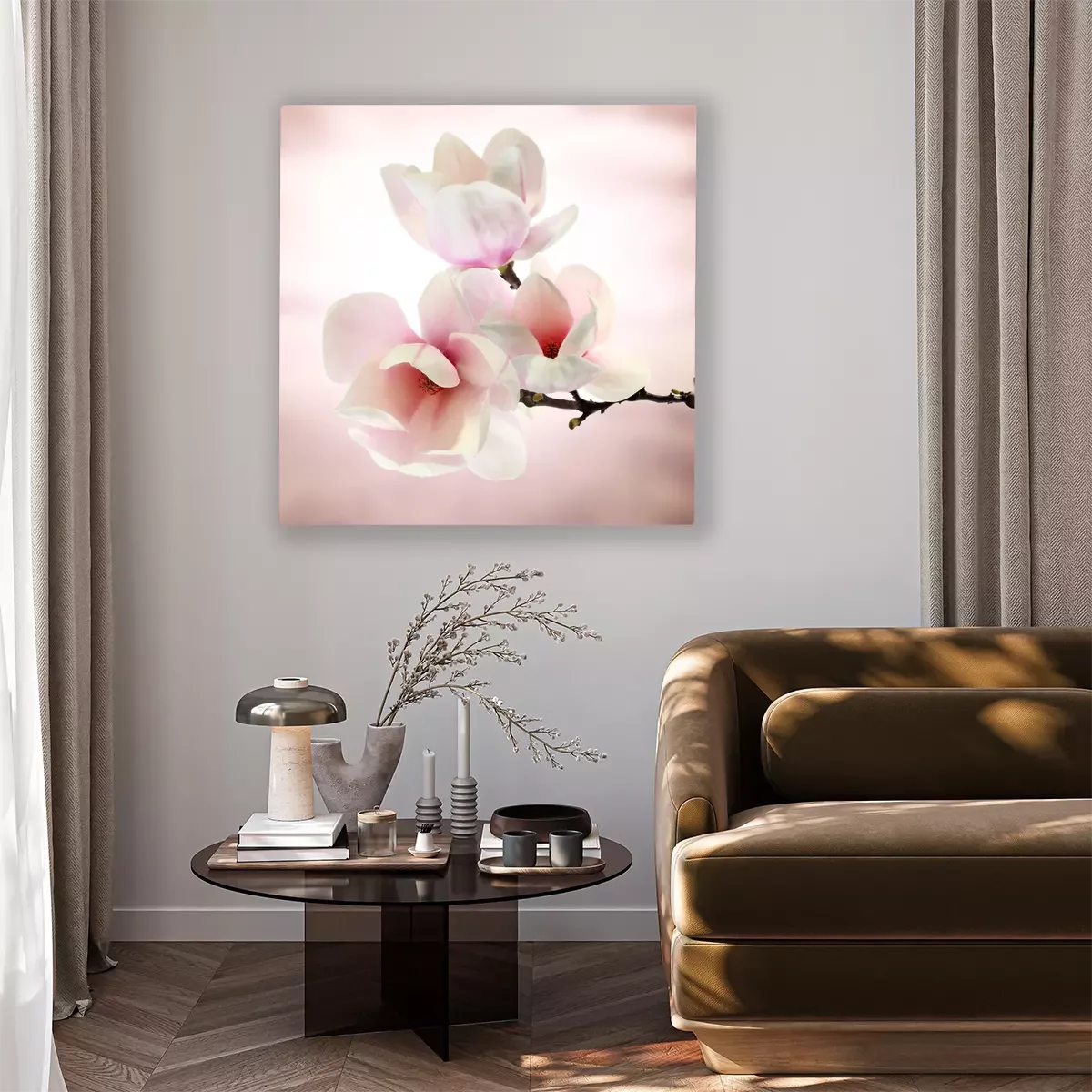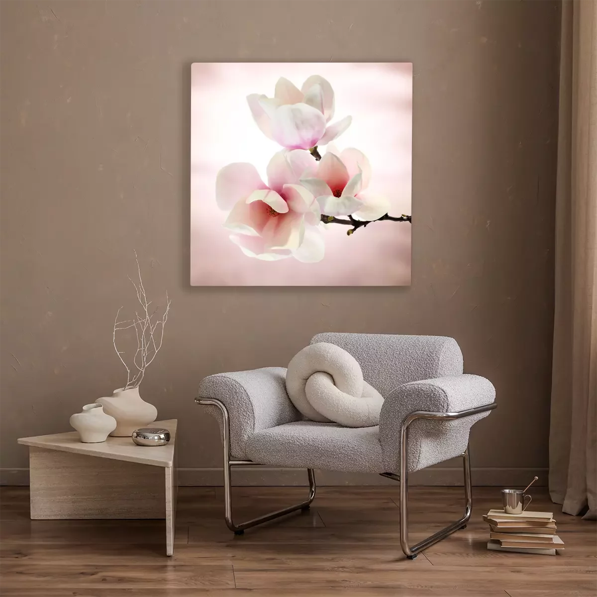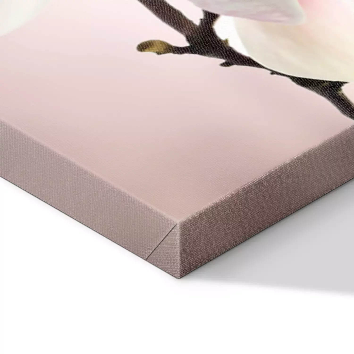 Hellrosa Magnolienblüten auf pastellfarbenem Hintergrund