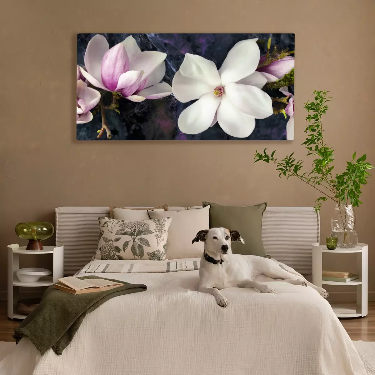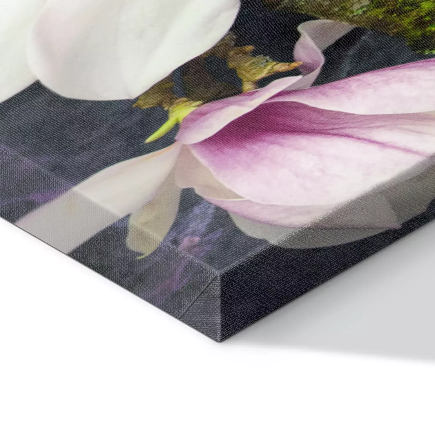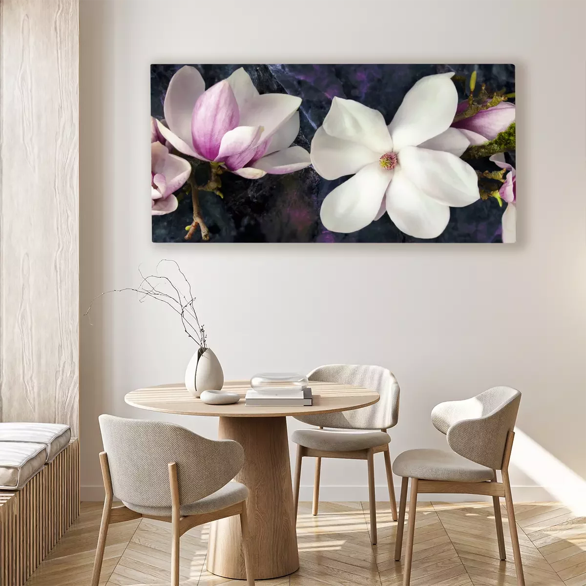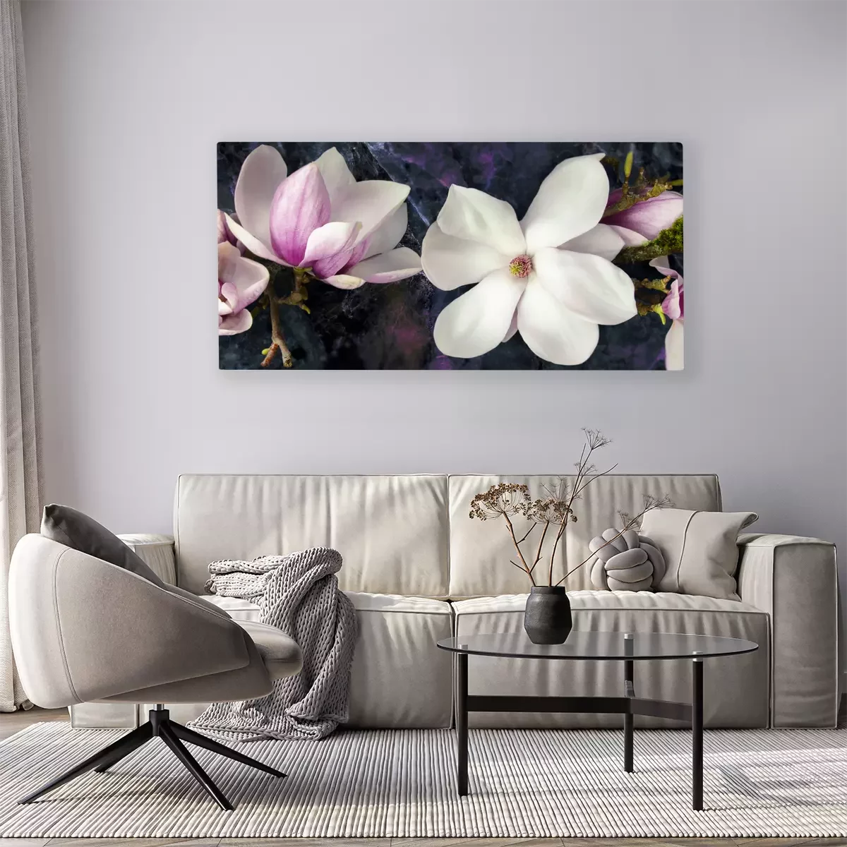 Magnolienblüten in rosa- und weißtönen auf dunklem hintergrund