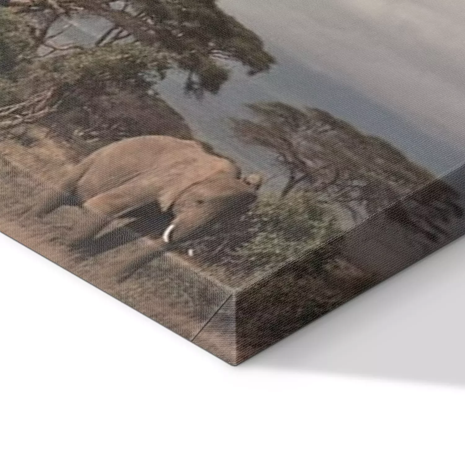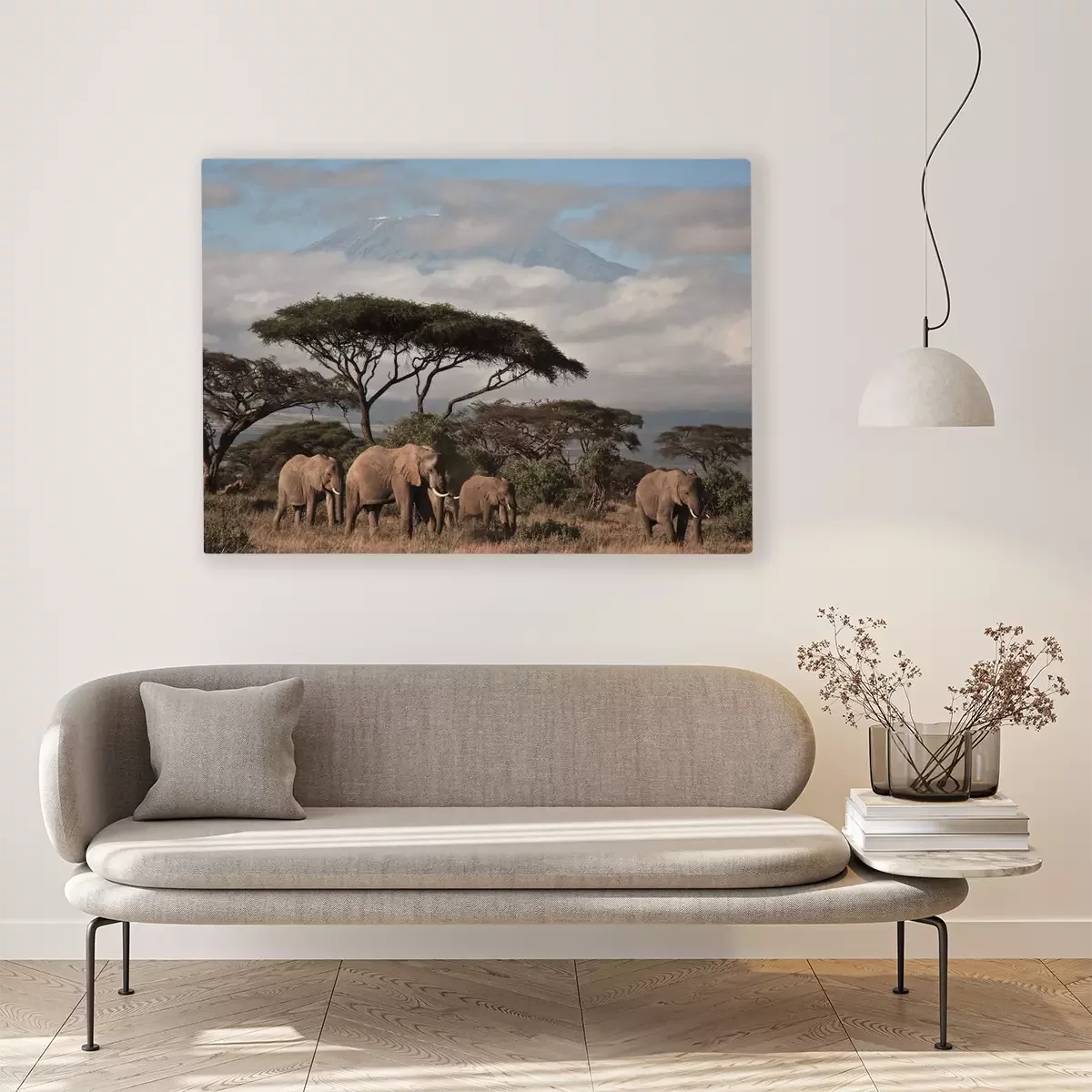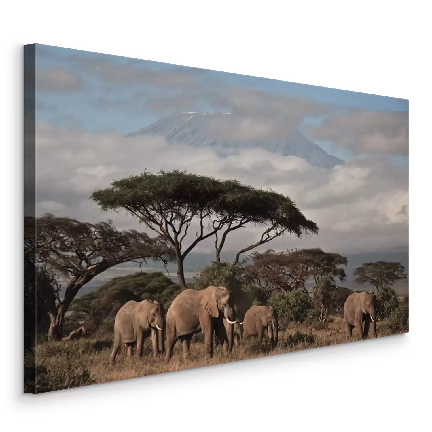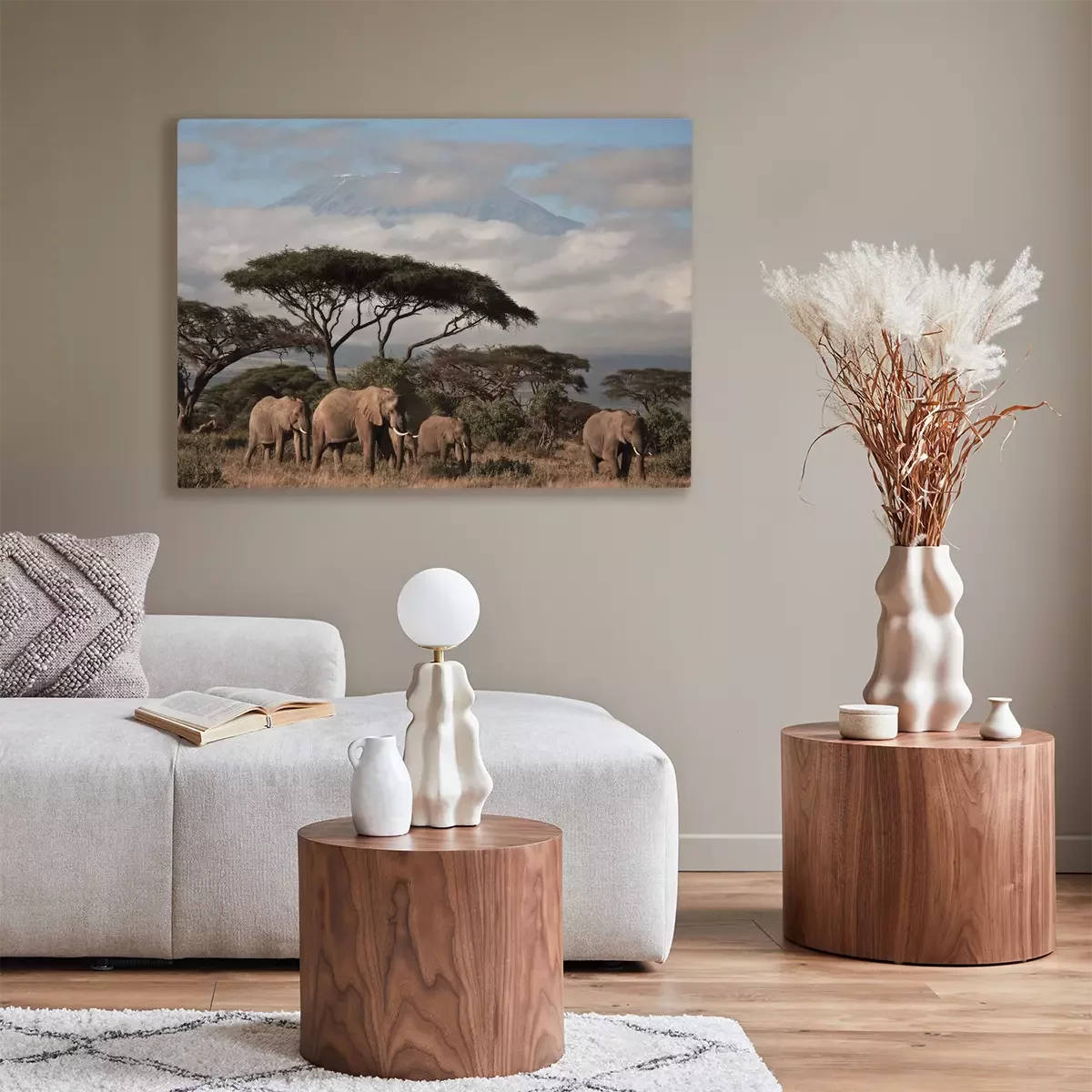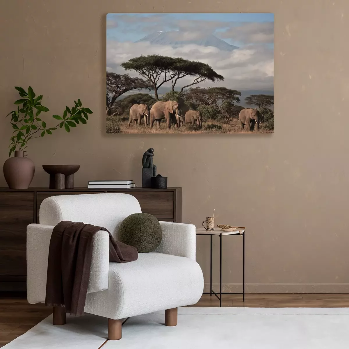 Majestätische elefanten vor der kulisse von bäumen und bergen