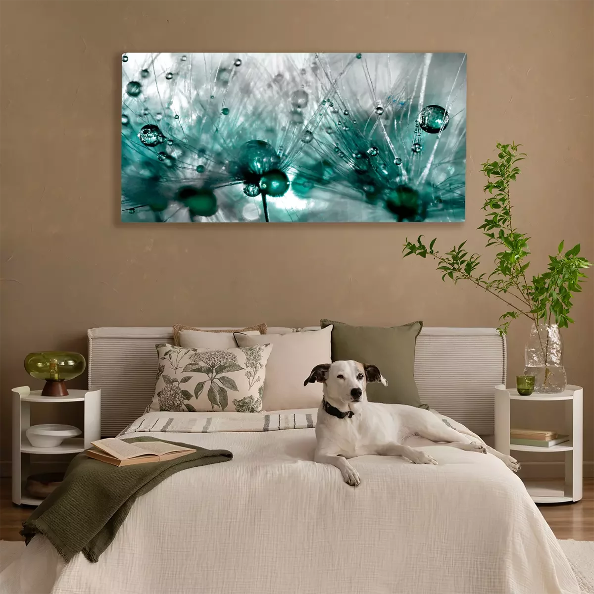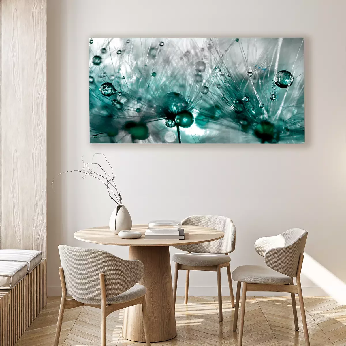 Makroaufnahme eines löwenzahns mit wassertropfen im grün