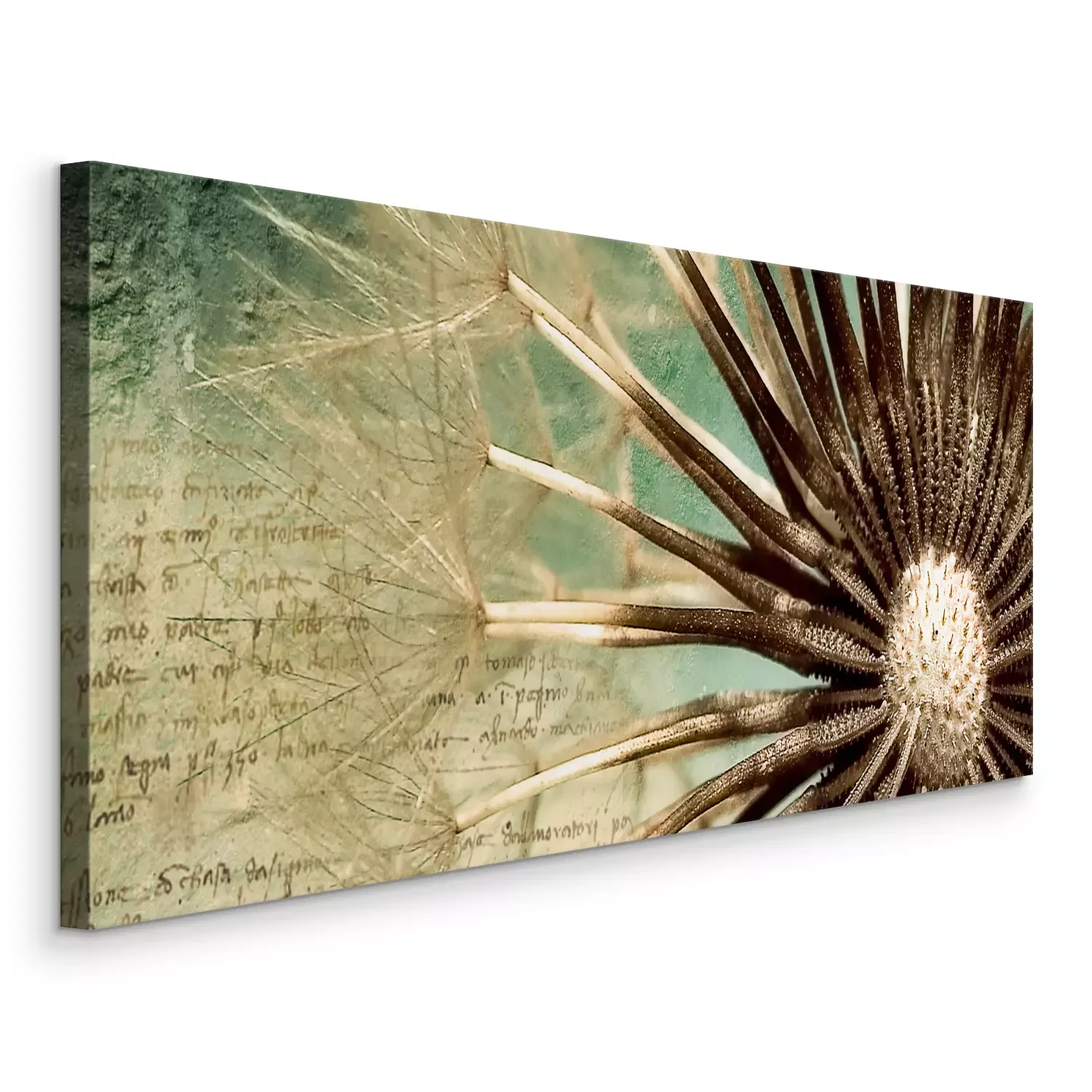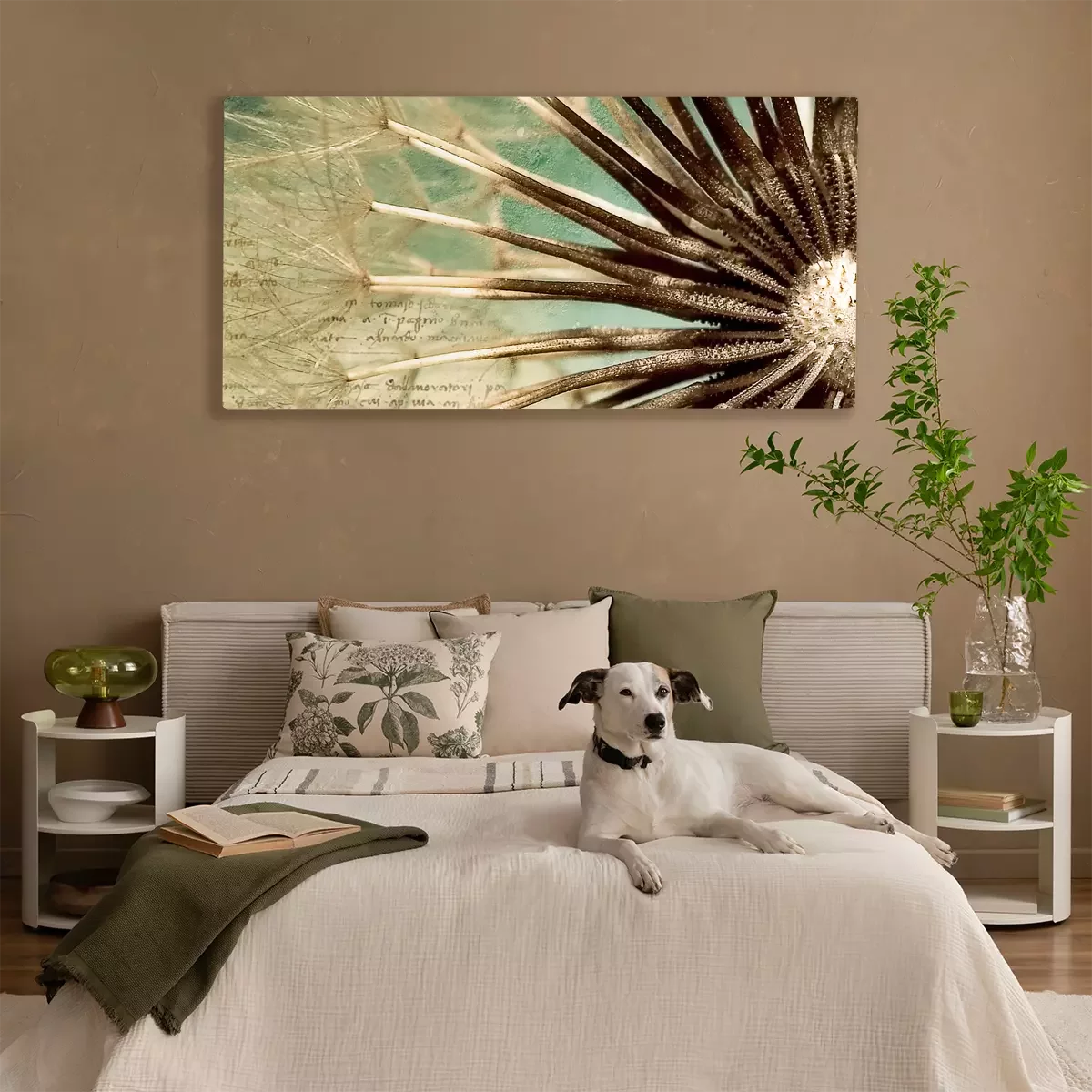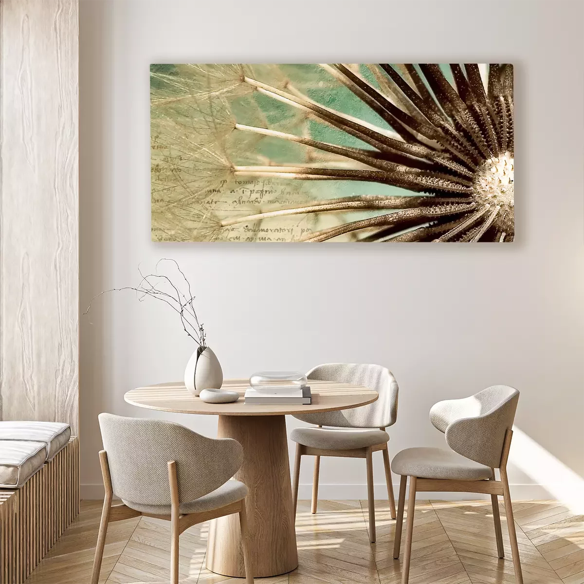 Makrofotografie von löwenzahnsamen auf grünem und beigem hintergrund