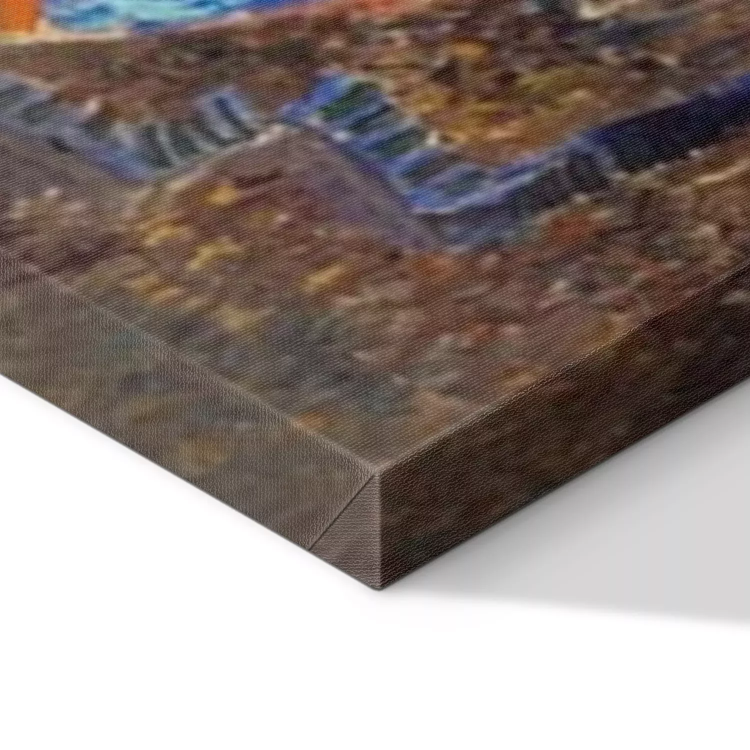 Das Motiv wird auf eine qualitativ hochwertige Leinwand gedruckt, die auf einen Blendrahmen gezogen wird. Da der Aufdruck die Seitenkanten bedeckt, muss das Bild nicht zusätzlich eingerahmt werden. Wir empfehlen außerdem Kompositionen aus mehreren Bildern, die ein harmonisches Ganzes bilden.