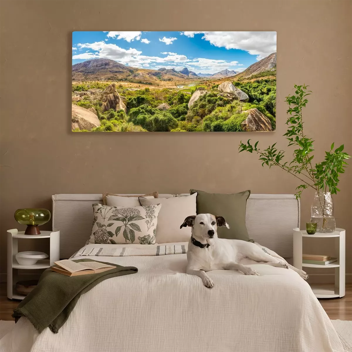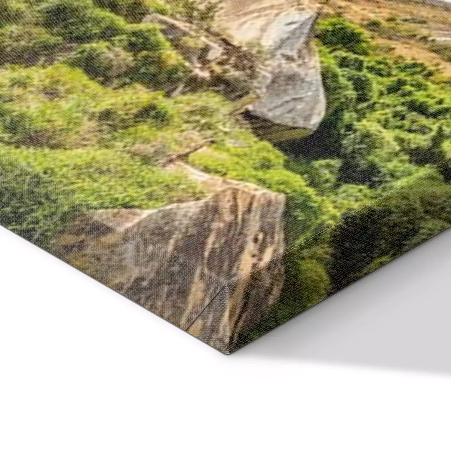 Das Motiv wird auf eine qualitativ hochwertige Leinwand gedruckt, die auf einen Blendrahmen gezogen wird. Da der Aufdruck die Seitenkanten bedeckt, muss das Bild nicht zusätzlich eingerahmt werden. Wir empfehlen außerdem Kompositionen aus mehreren Bildern, die ein harmonisches Ganzes bilden.