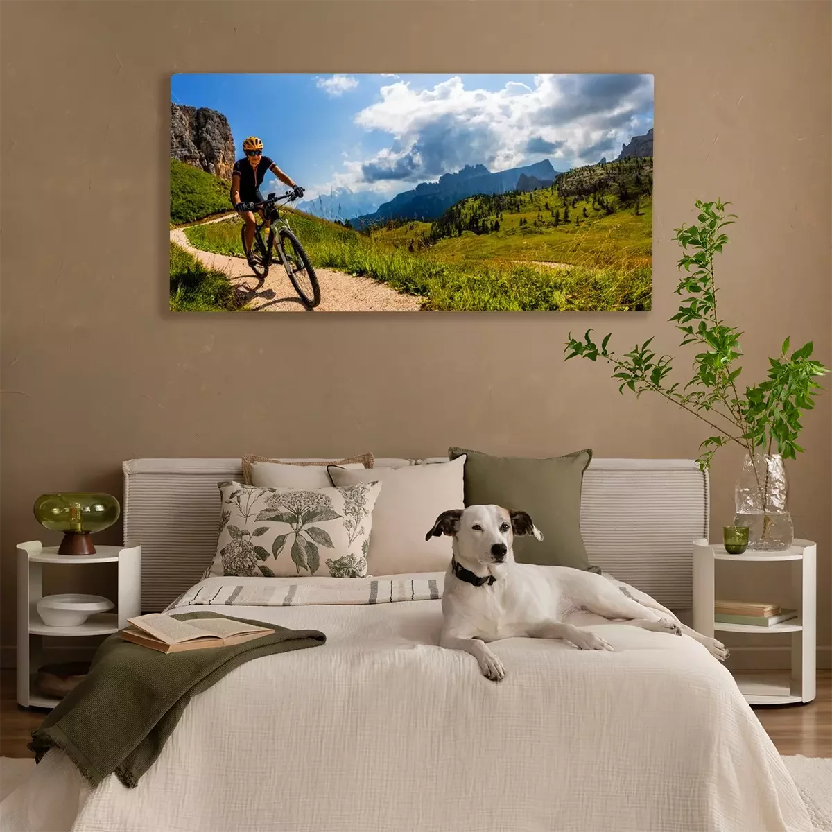 Mann und Frau auf Fahrrädern in den Dolomiten