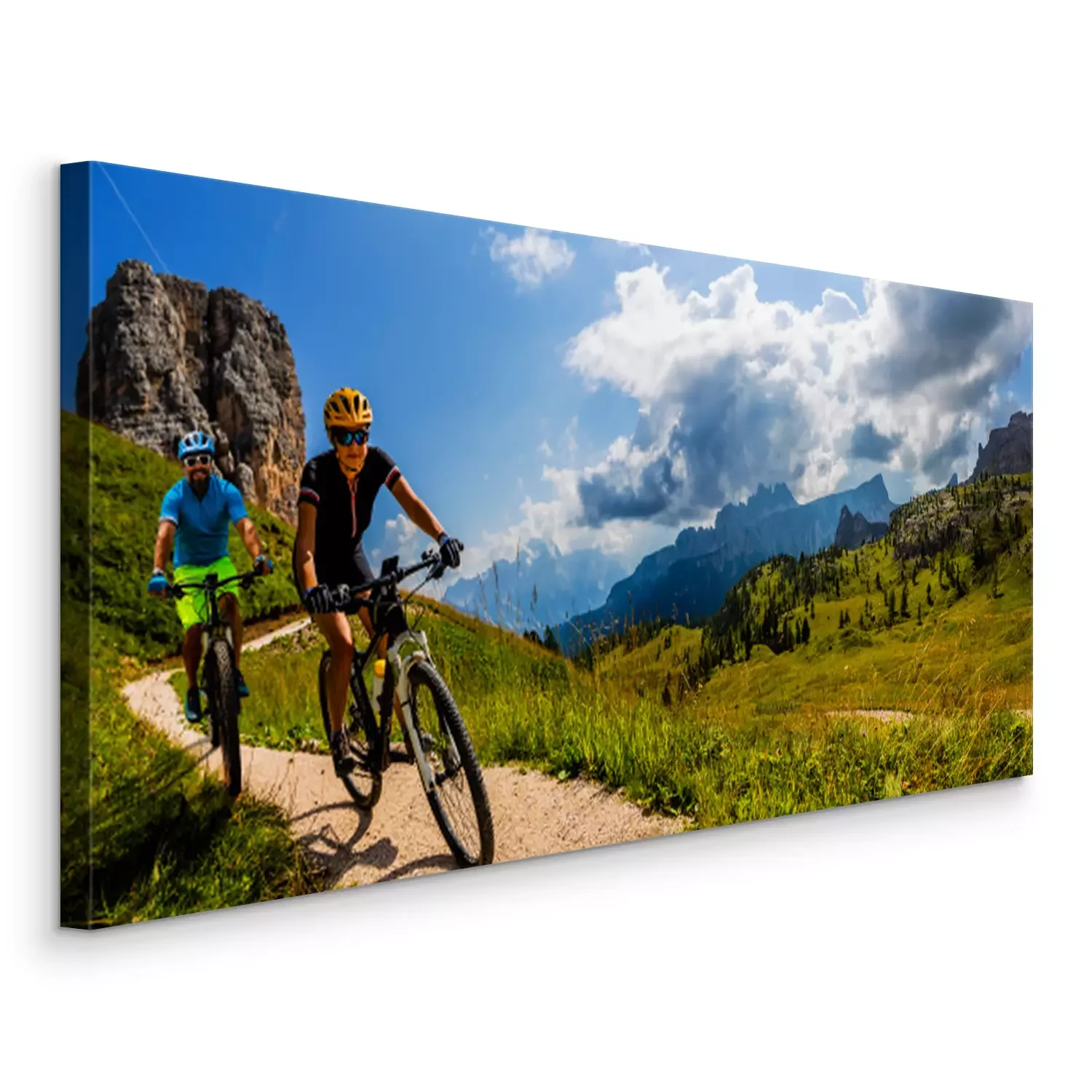 Bild Mann und Frau auf Fahrrädern in den Dolomiten