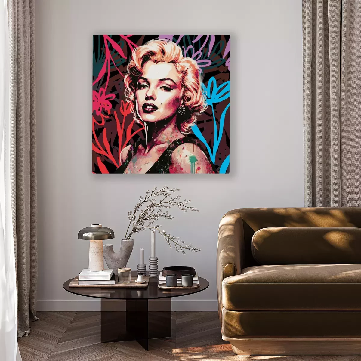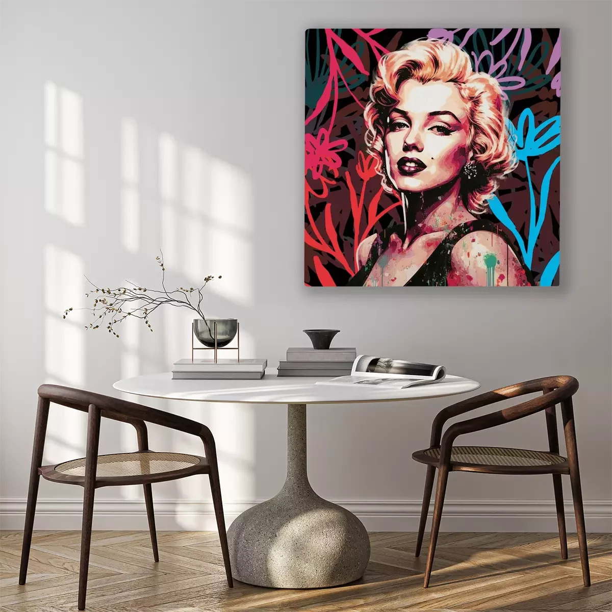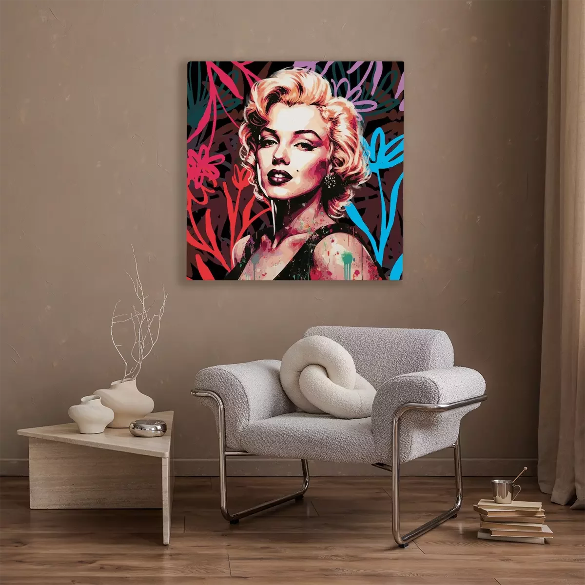 Marilyn monroe vor einem floralen hintergrund im skizzenstil