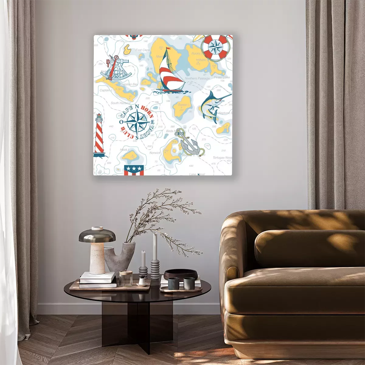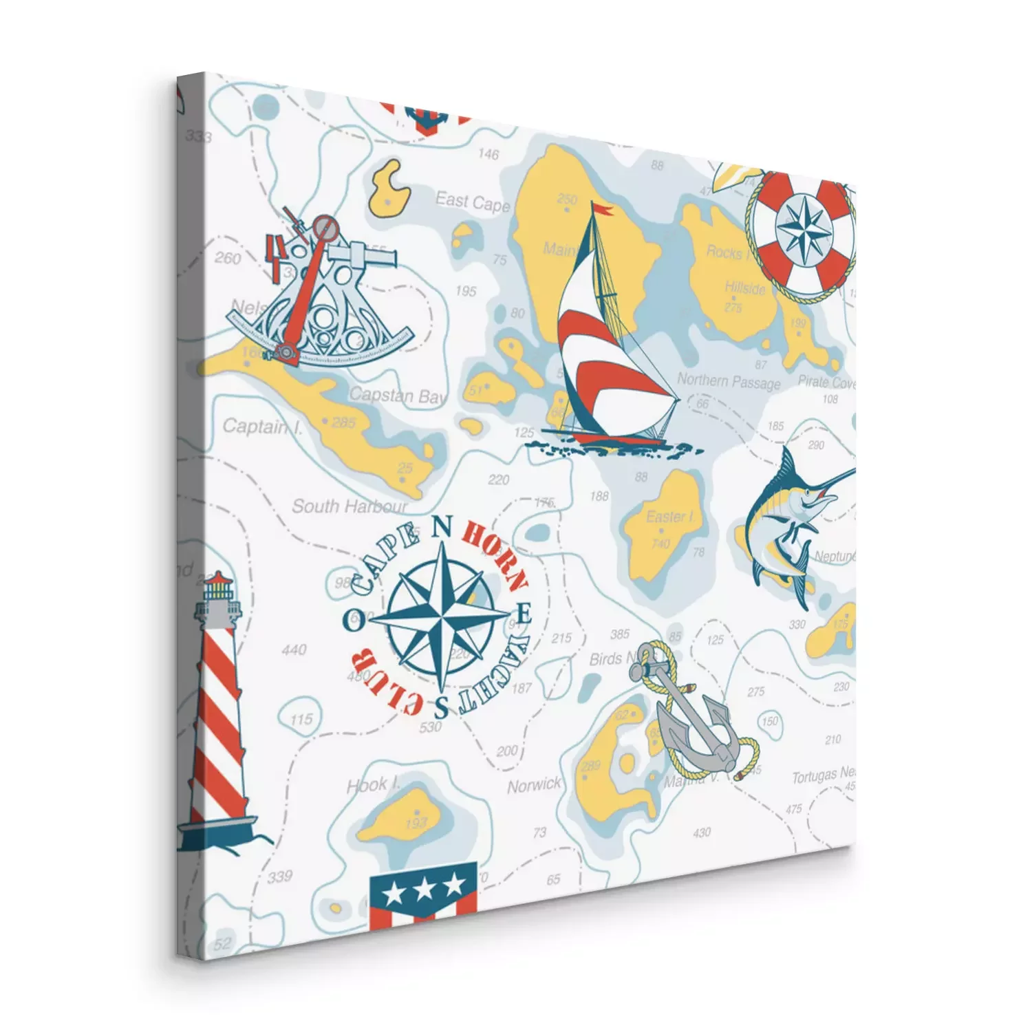 Nautical and sailing elements patchwork vector seamless pattern wallpaper