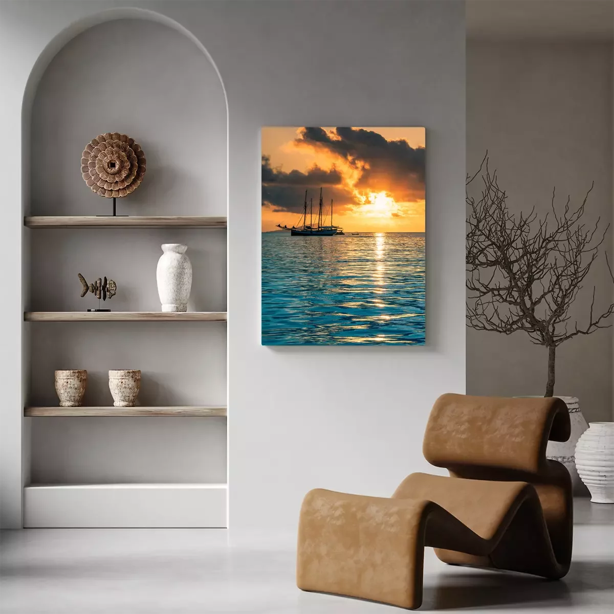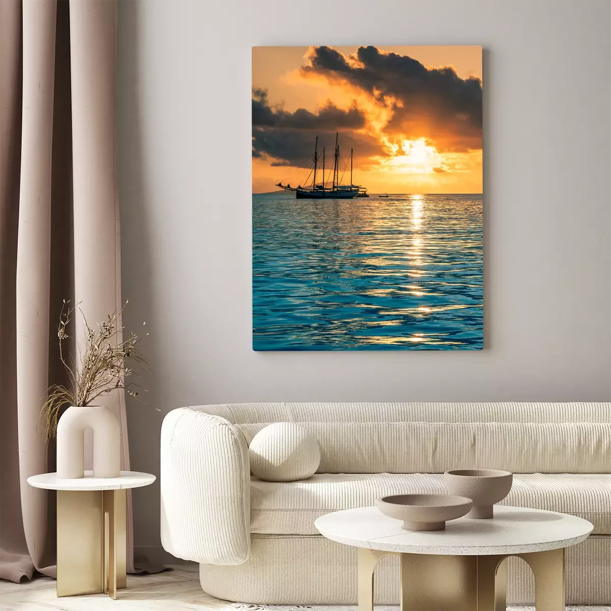 Segelschiff und untergehende Sonne