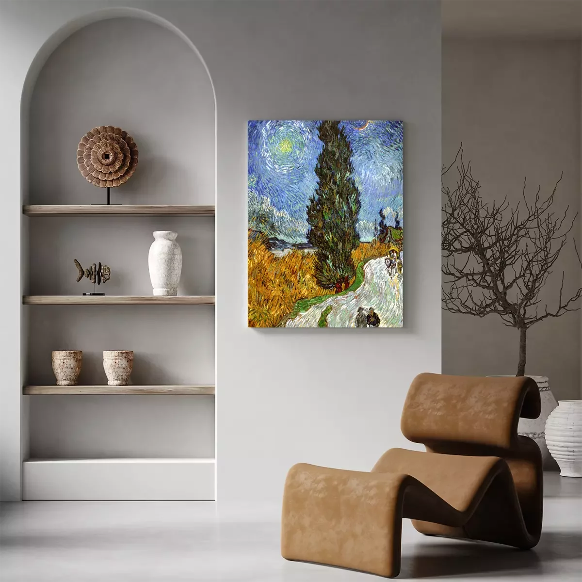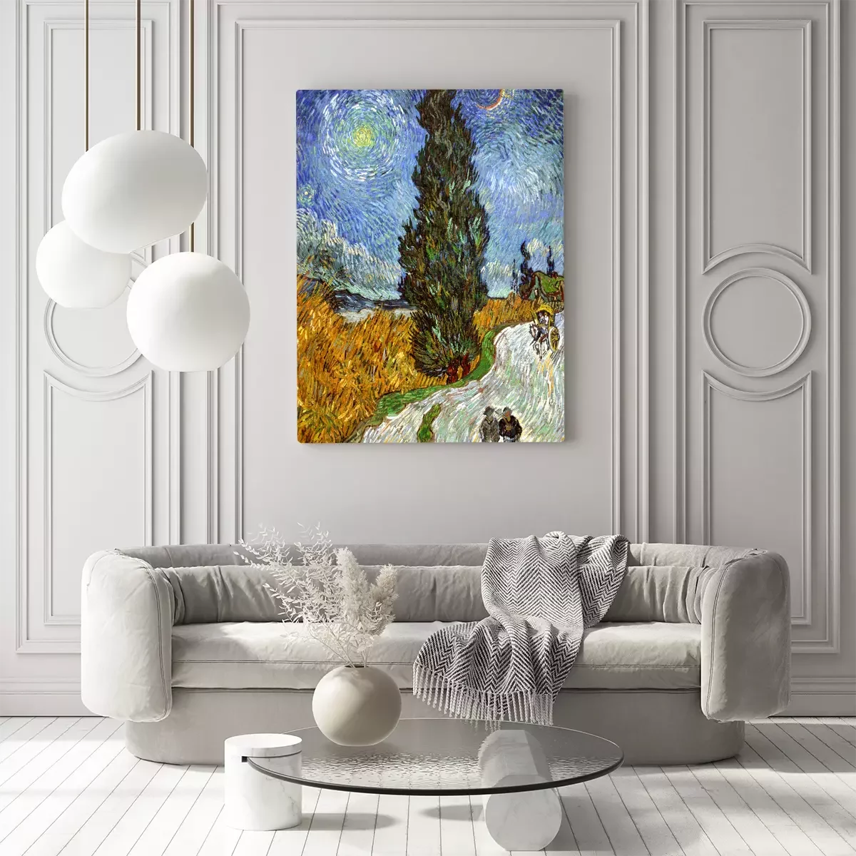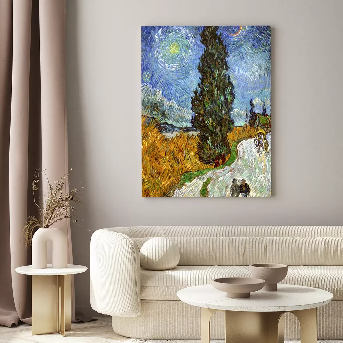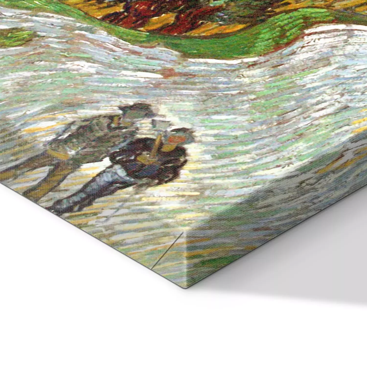 Menschen, die auf einer straße zu einem dorf mit weizenfeldern spazieren gehen